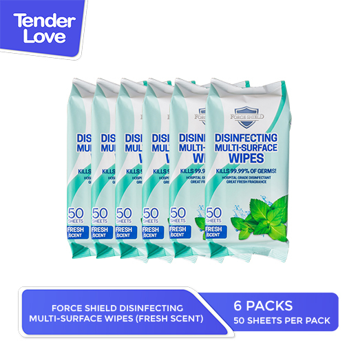 Forceshield Fresh Scent Disinfecting Multi-Surface Wipes 50's Pack of 6