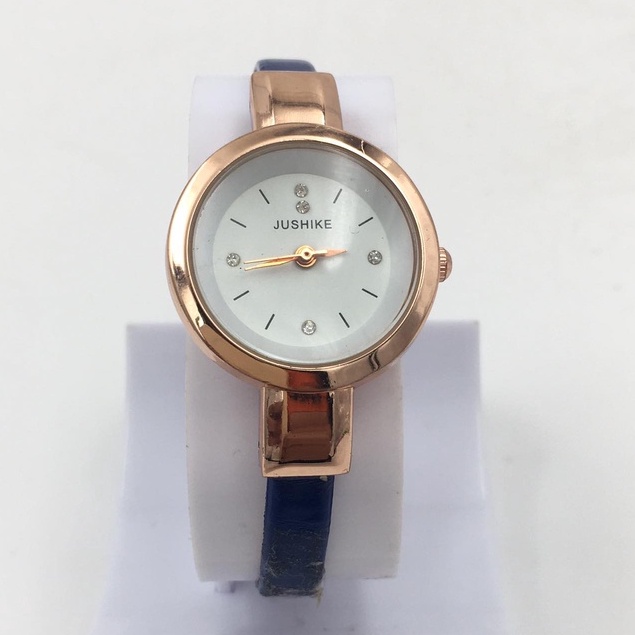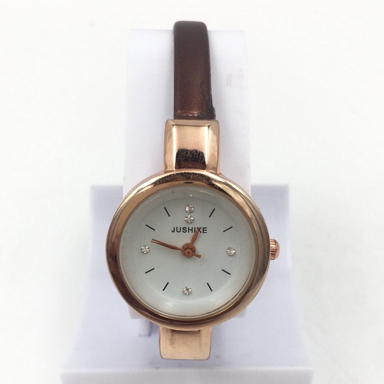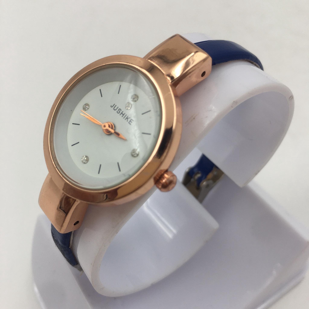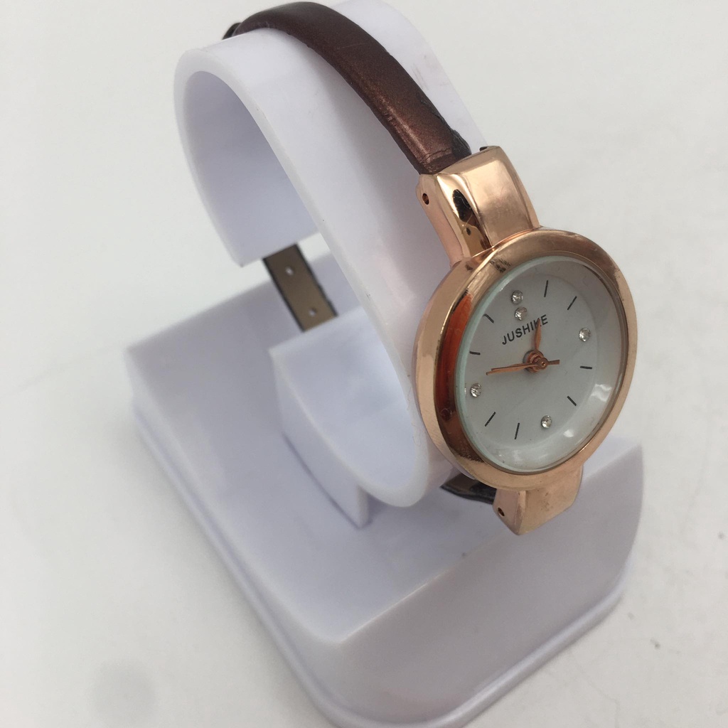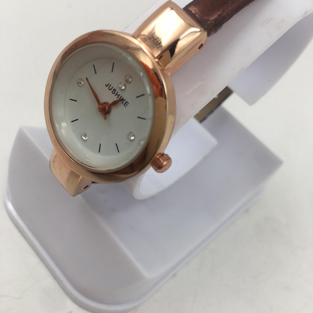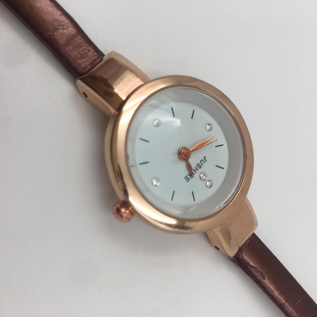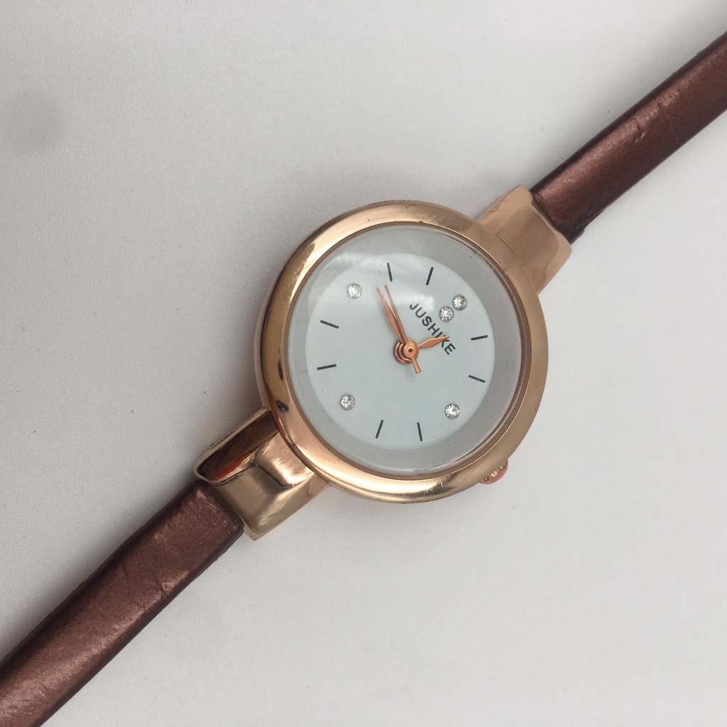 JUSHIKE Thin Leather Women's Fashion Rhinestone Dial Quartz Analog Wrist Watch