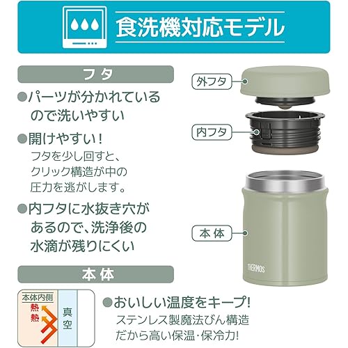 THERMOS Dishwasher-safe model Vacuum Insulated Soup Jar 300ml Khaki All parts Keep warm and cool Easy to clean Round...