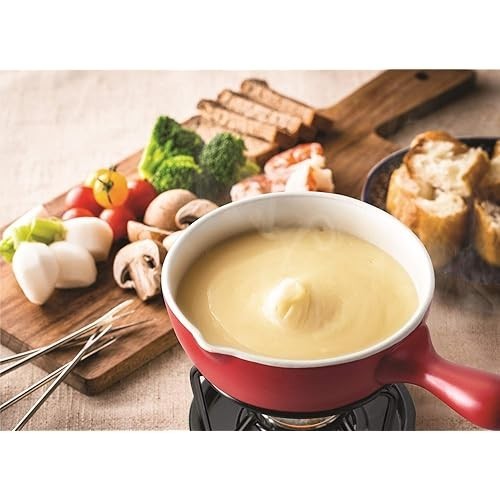 Ishigaki Fondue Pot Set Red 15cm approx. 22.3cm wide x 15.8cm deep 12.9cm high Cheese Chocolate Ceramic Microwaveable...