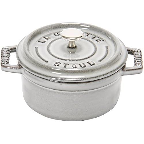 Staub pot picot cocotte round 10cm graphite gray 1101018/40500-106-0 two-hand enameled Rund Brater picotte stylish...