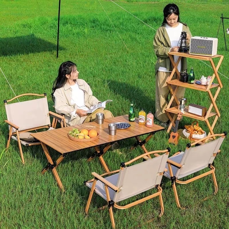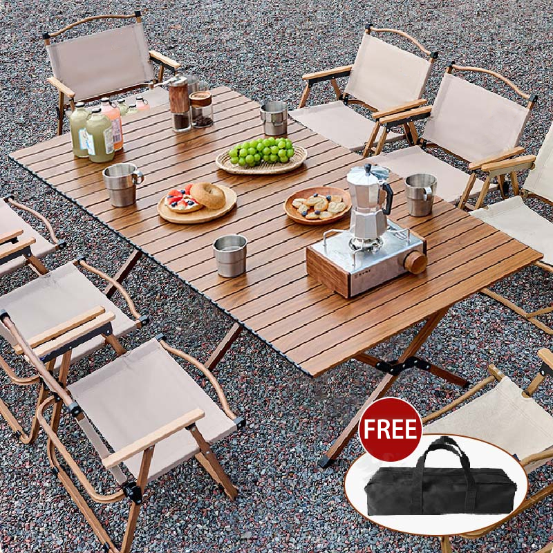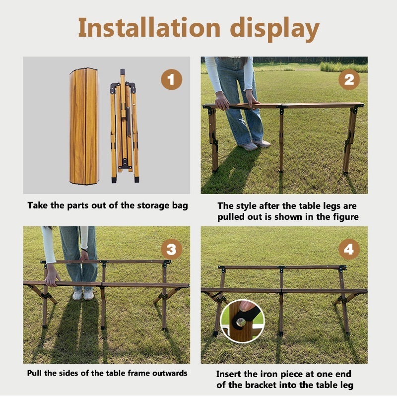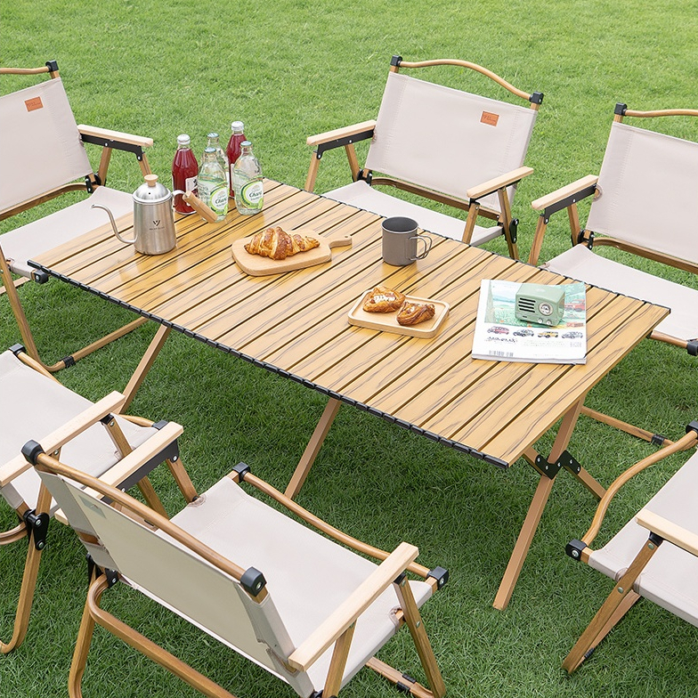 Outdoor Folding Egg Roll Table Camping Table Portable BarbecueTable and Chair Picnic Metal Furniture