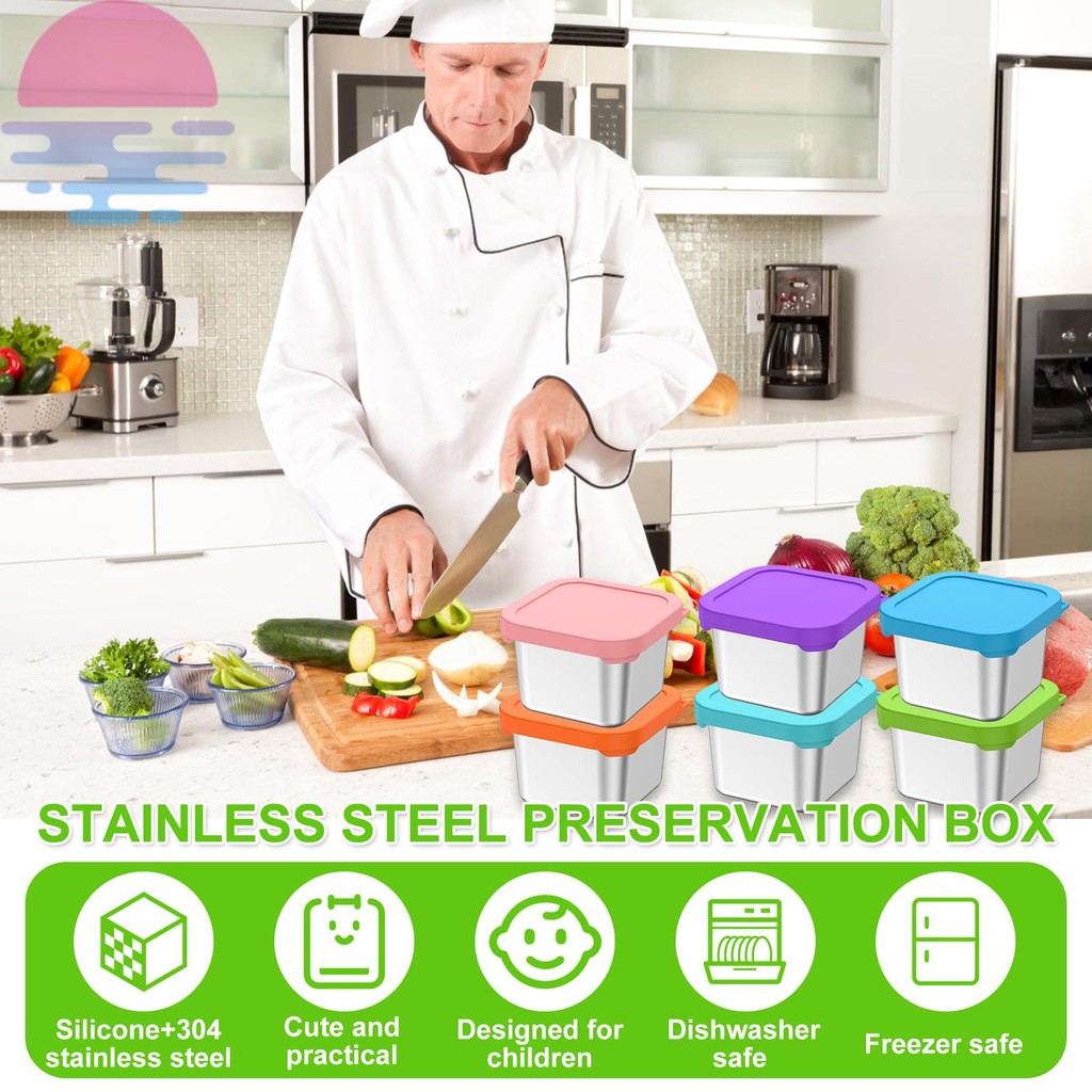 6Pcs Stainless Steel Snack Containers 6oz Dipping Sauce Cups Sauce Containers Condiment Cups with Silicone Lids SHOPQJC4403