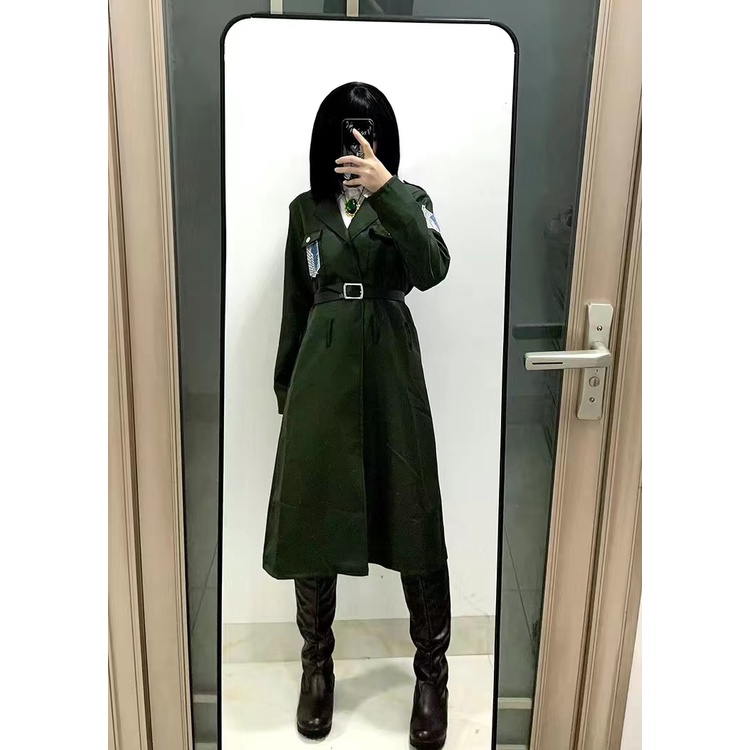 Anime Attack on Titan Cosplay Costume Green Cloak Full Set of Cos Allen Uniforms Army Green Long Coat