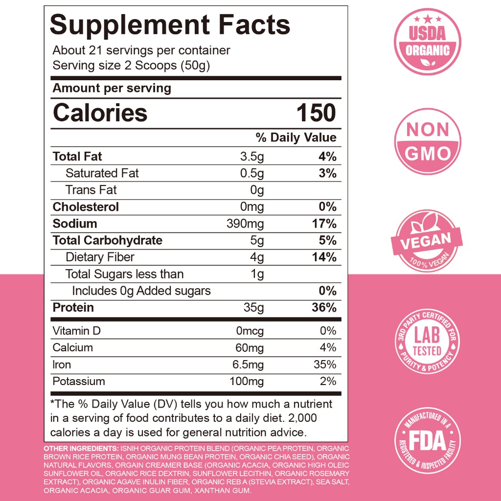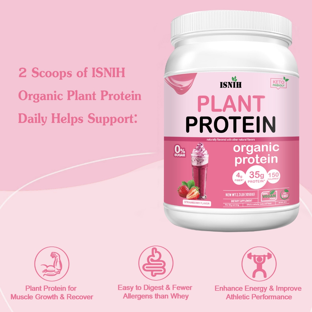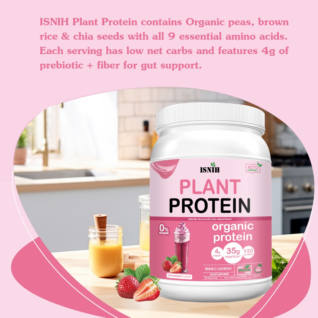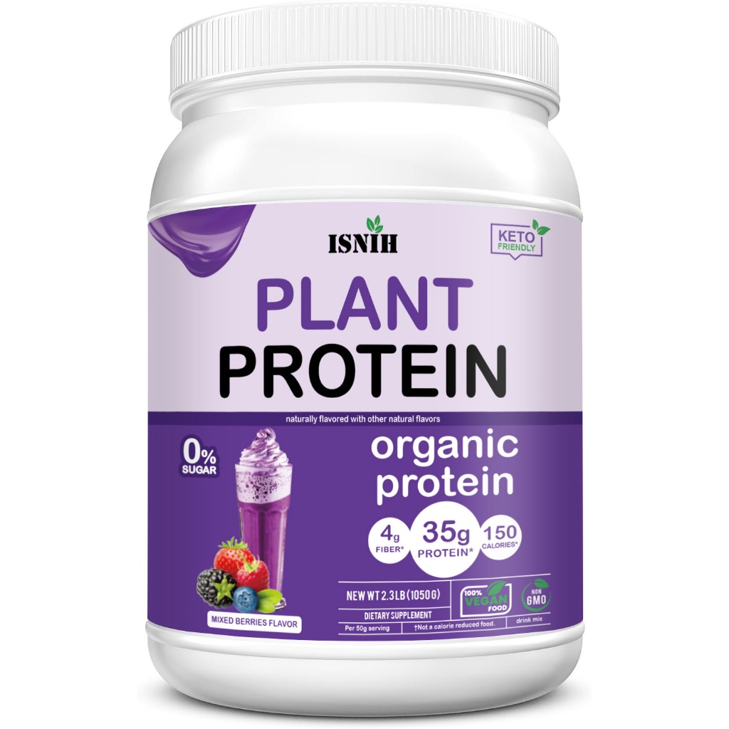 ISNIH Organic Vegan Plant Based Protein Powder Supports Weight Management and Gut Health 2.3LBS