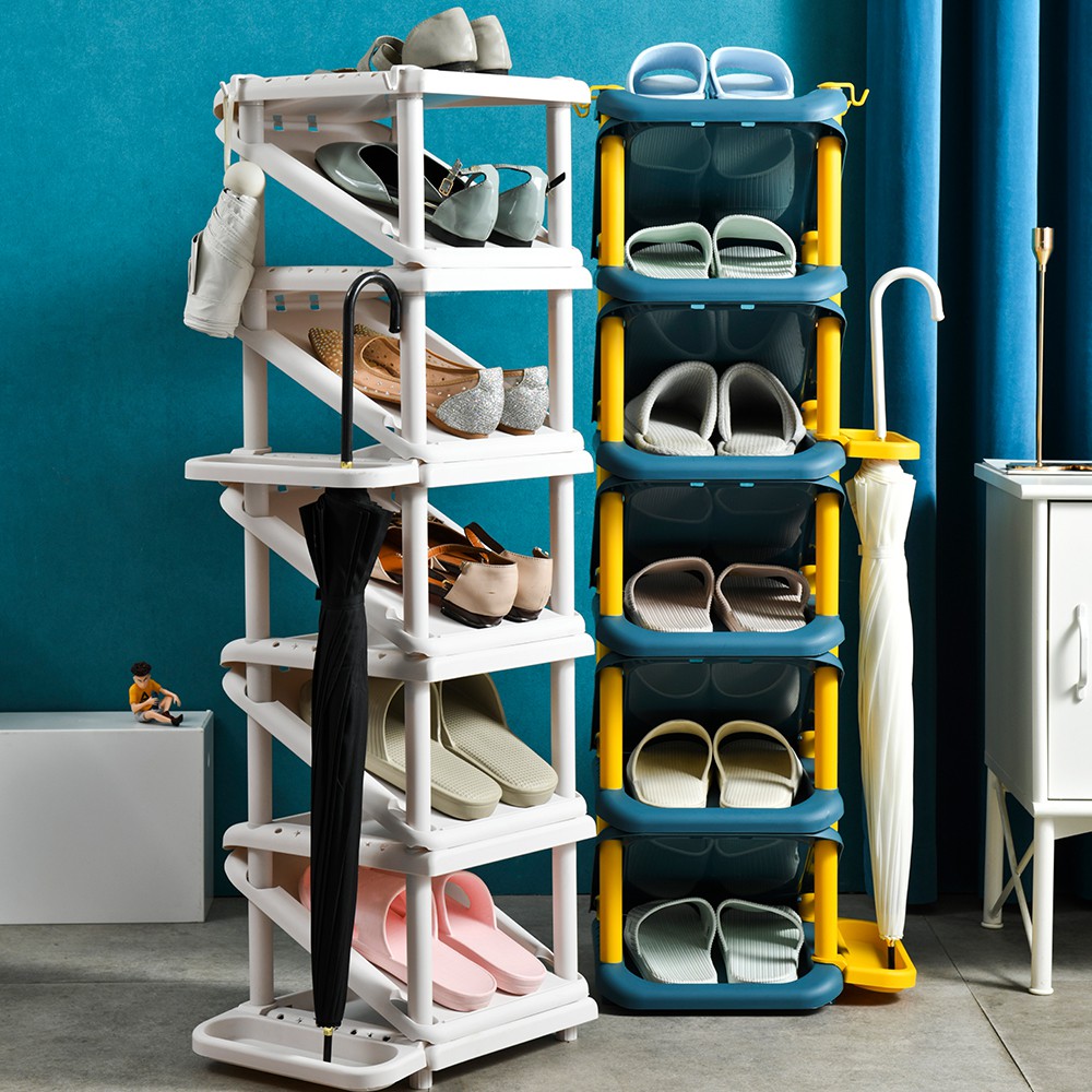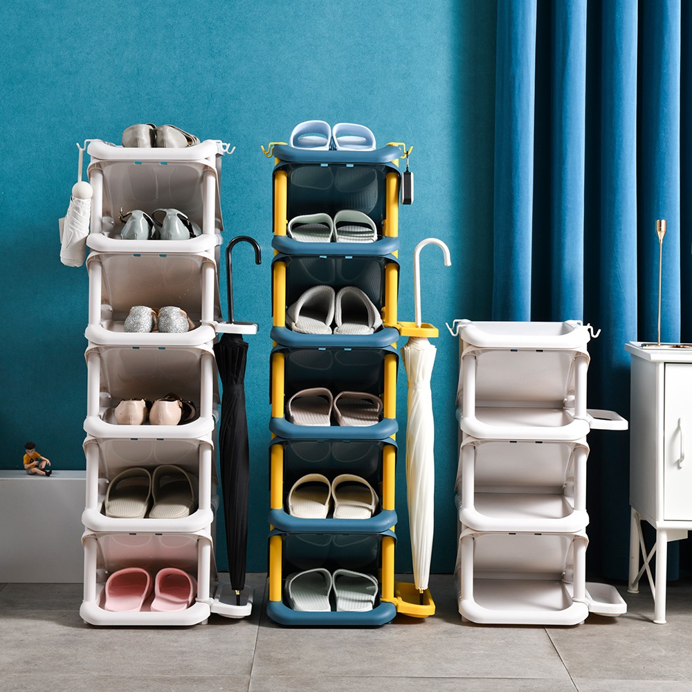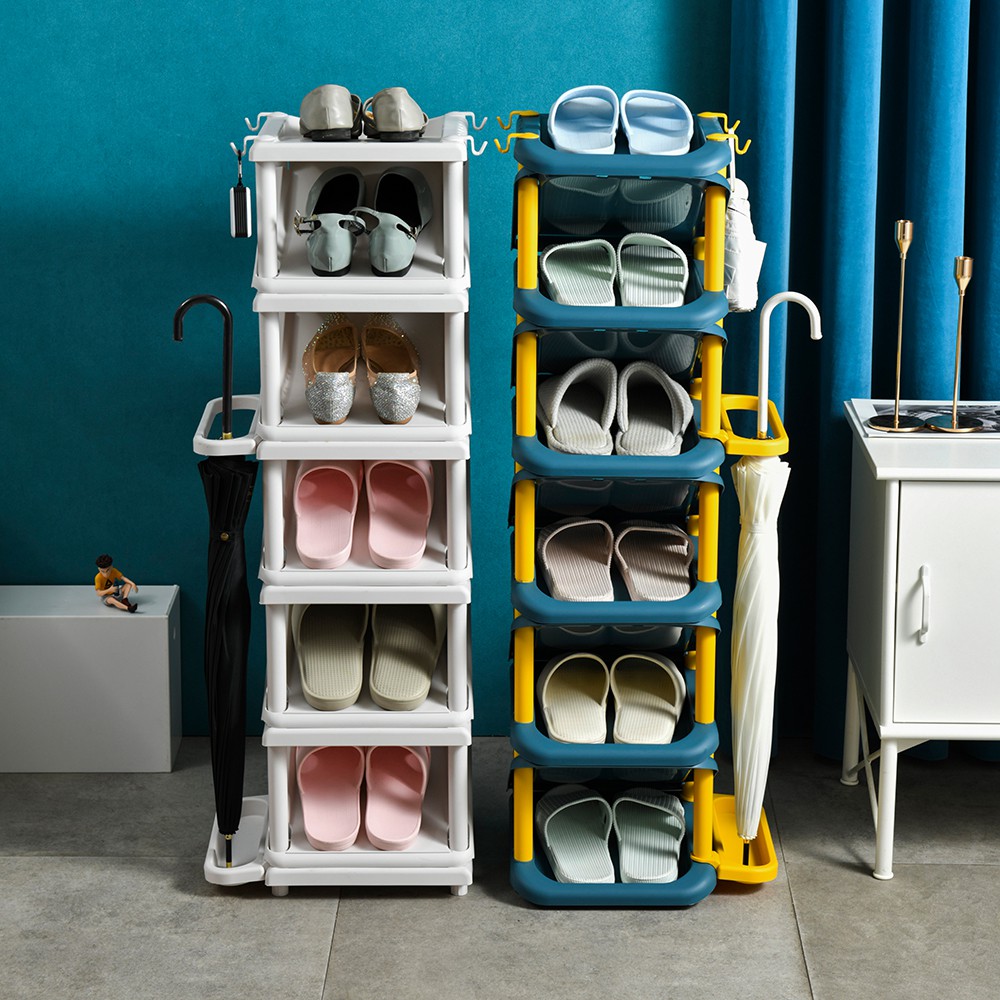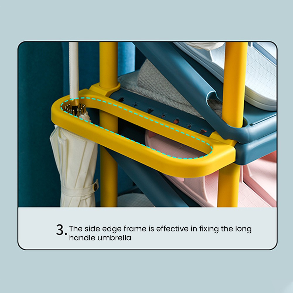 LOCAUPIN Shoe Rack Organizer with Hook and Umbrella Holder Multi-layer Space Saving Storage Shelves
