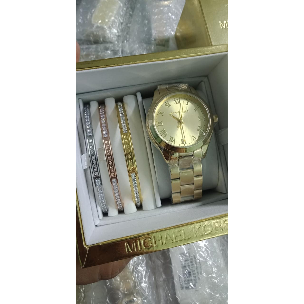 ONHAND | COD | MK Watch Slimrunway roman dial + Bangles