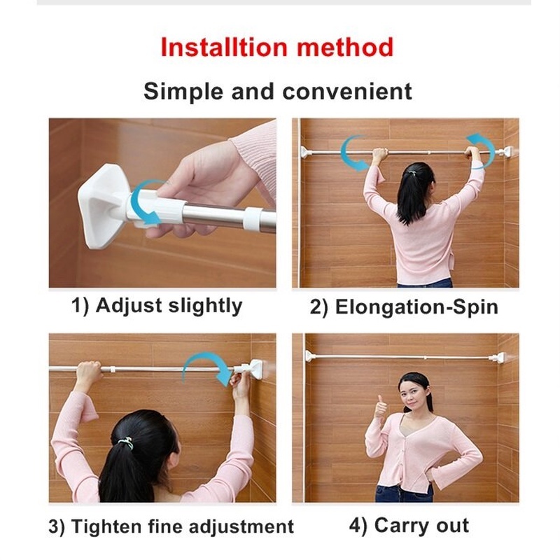 pouch-free Telescopic Rod Adjustable Shower Curtain Rods Anti-slip Clothes Rod Support Rod