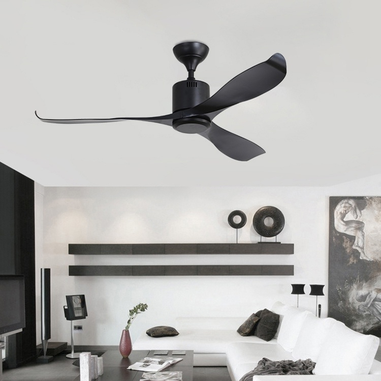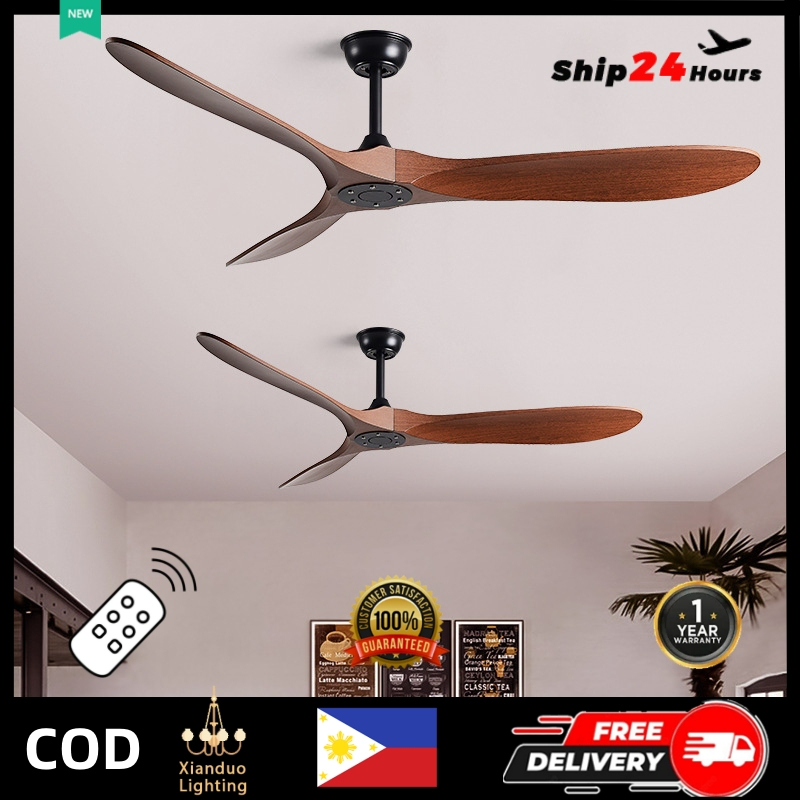 Large Size DC Ceiling Fan 60 Inch Solid Wood Ceiling Fan No Light With Remote 3 Wood Blades 6 Speeds