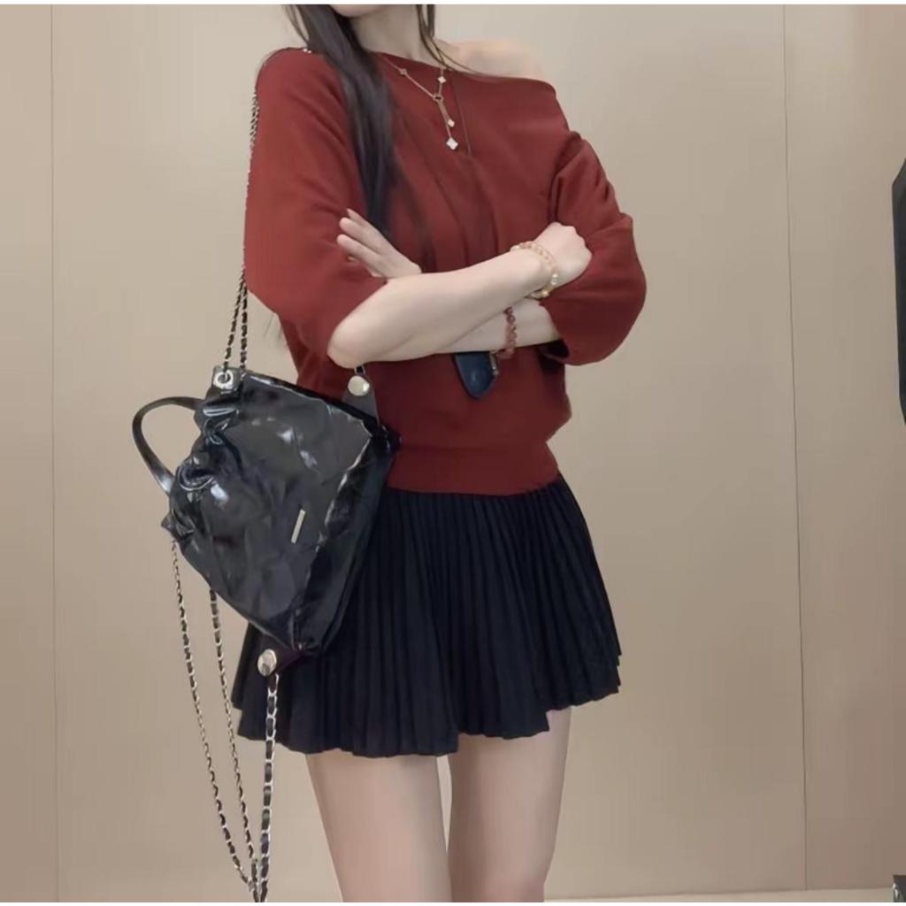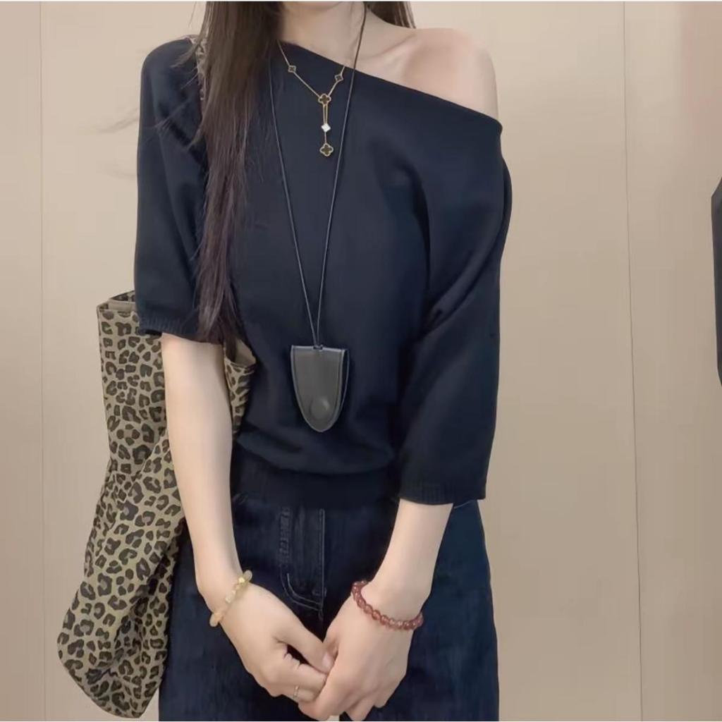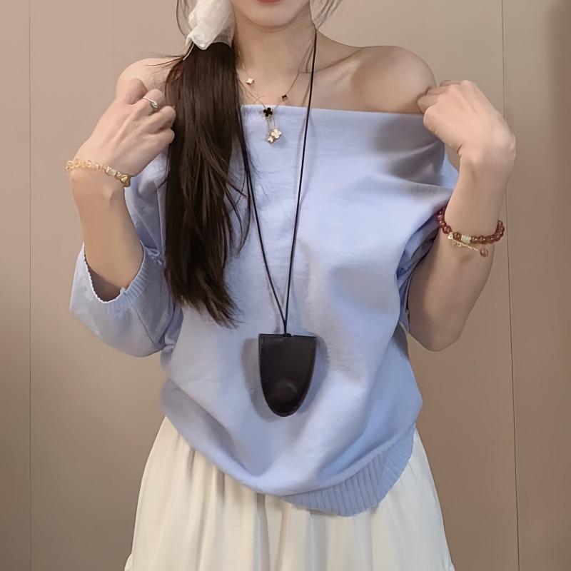 JNN Korean Style Off-Shoulder Spicy Girl Versatile Women Shoulder Loose Five-Quarter Sleeve