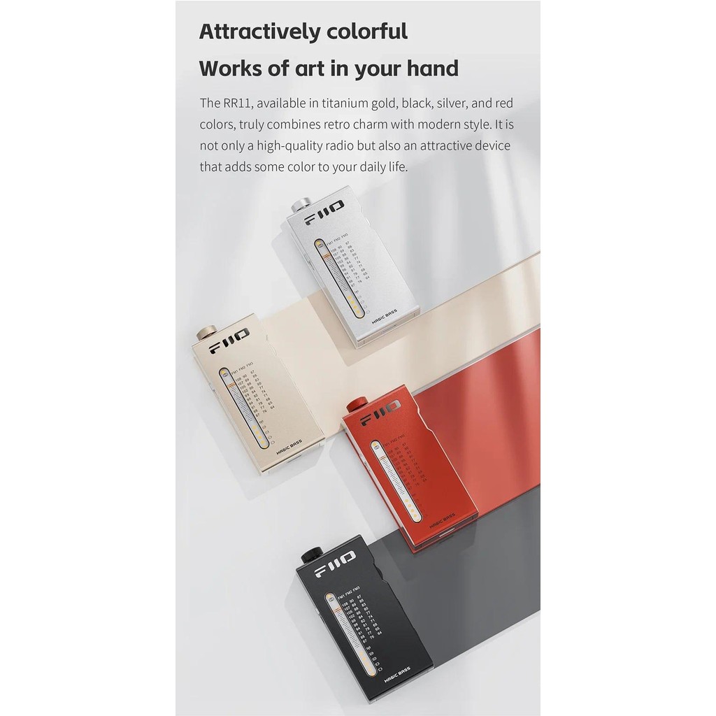 FiiO RR11 Portable HiFi FM Radio Receiver Analog PVR Tuning Enhanced BASS 3D Surround Sound 64-108MHz Full-Band Coverage