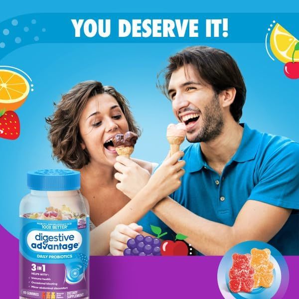 Sunplan DIGESTIVE ADVANTAGE® Daily Probiotic – Assorted Fruit Blend Gummies 120
