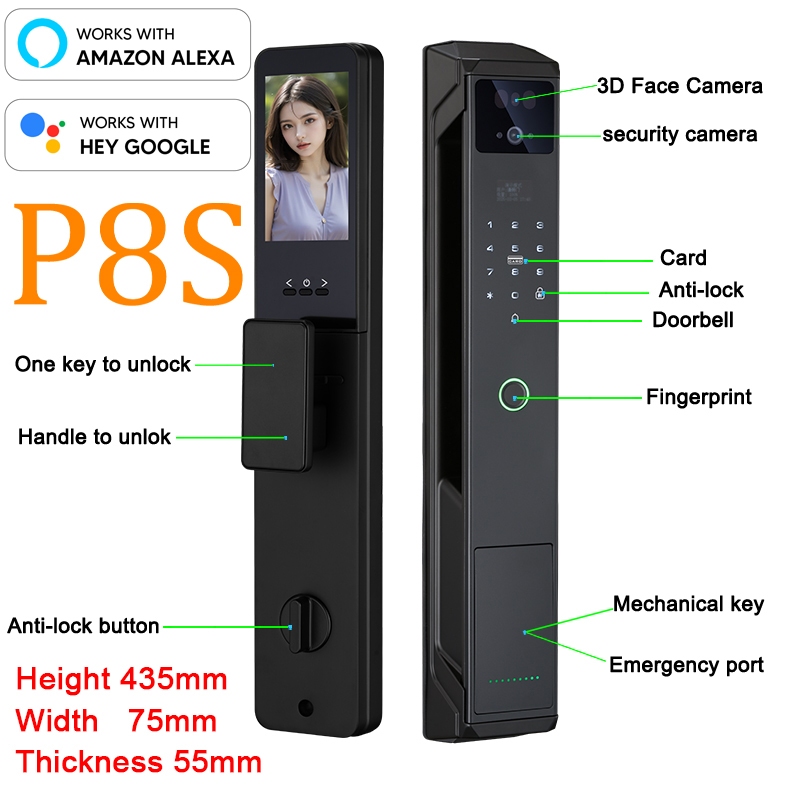 Foobe IP65 Waterproof Smart Door Lock With Camera Tuya App Automatic Main Door Lock Face Recognition