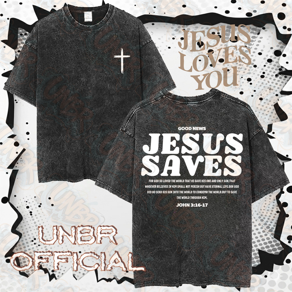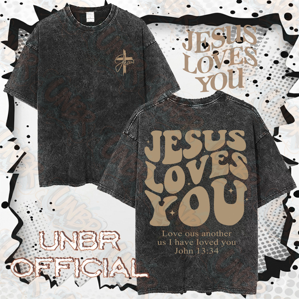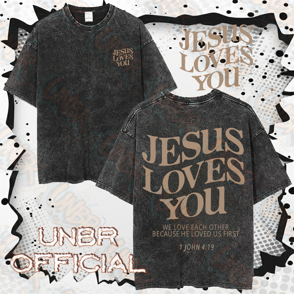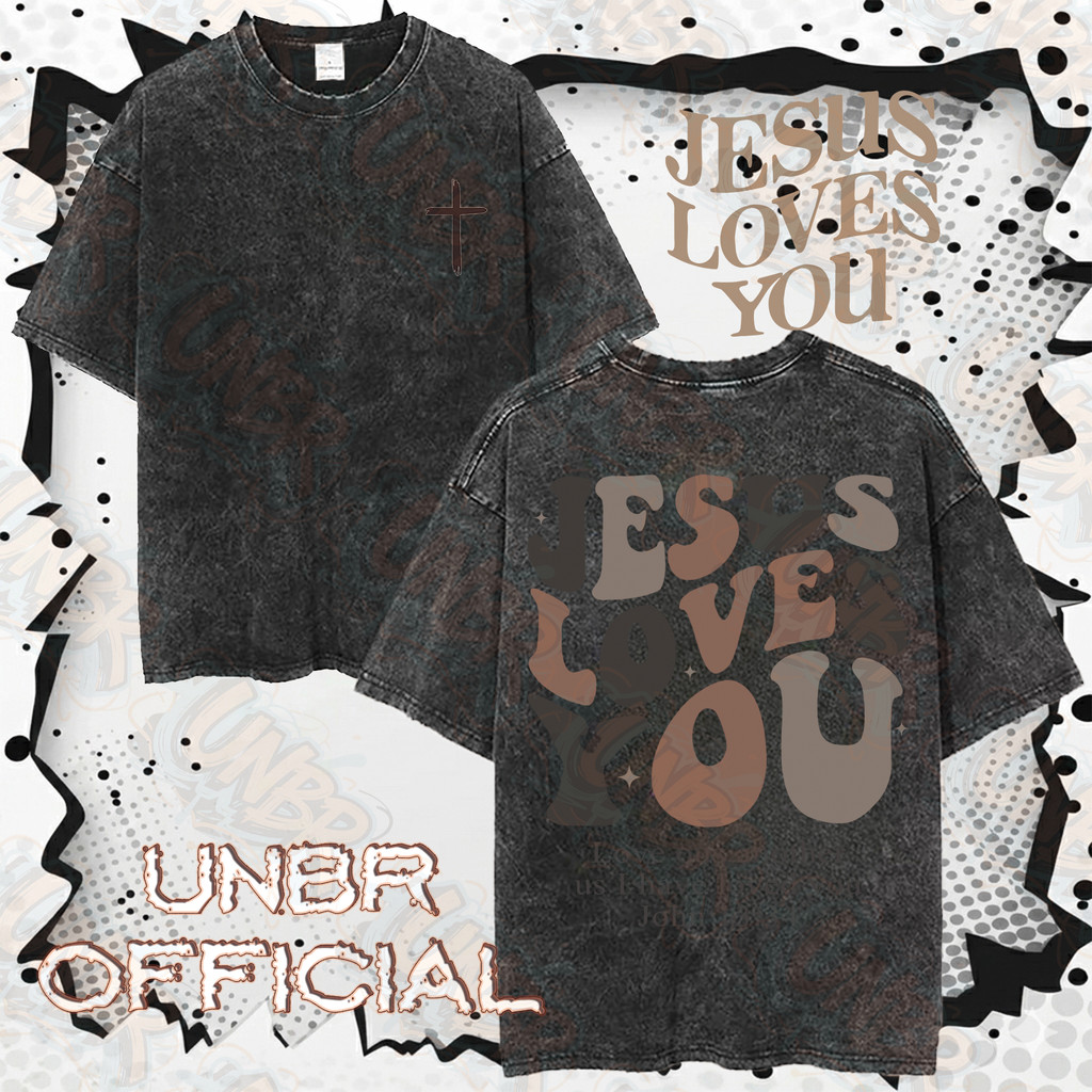 ✅READY STOCK )UNBR Christian Jesus Good News God Loves You T-Shirts Washed Vintage