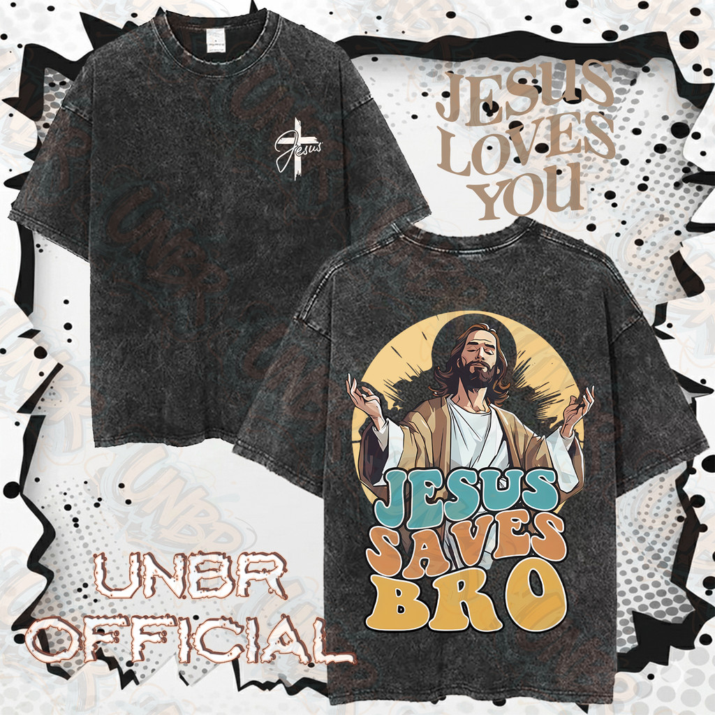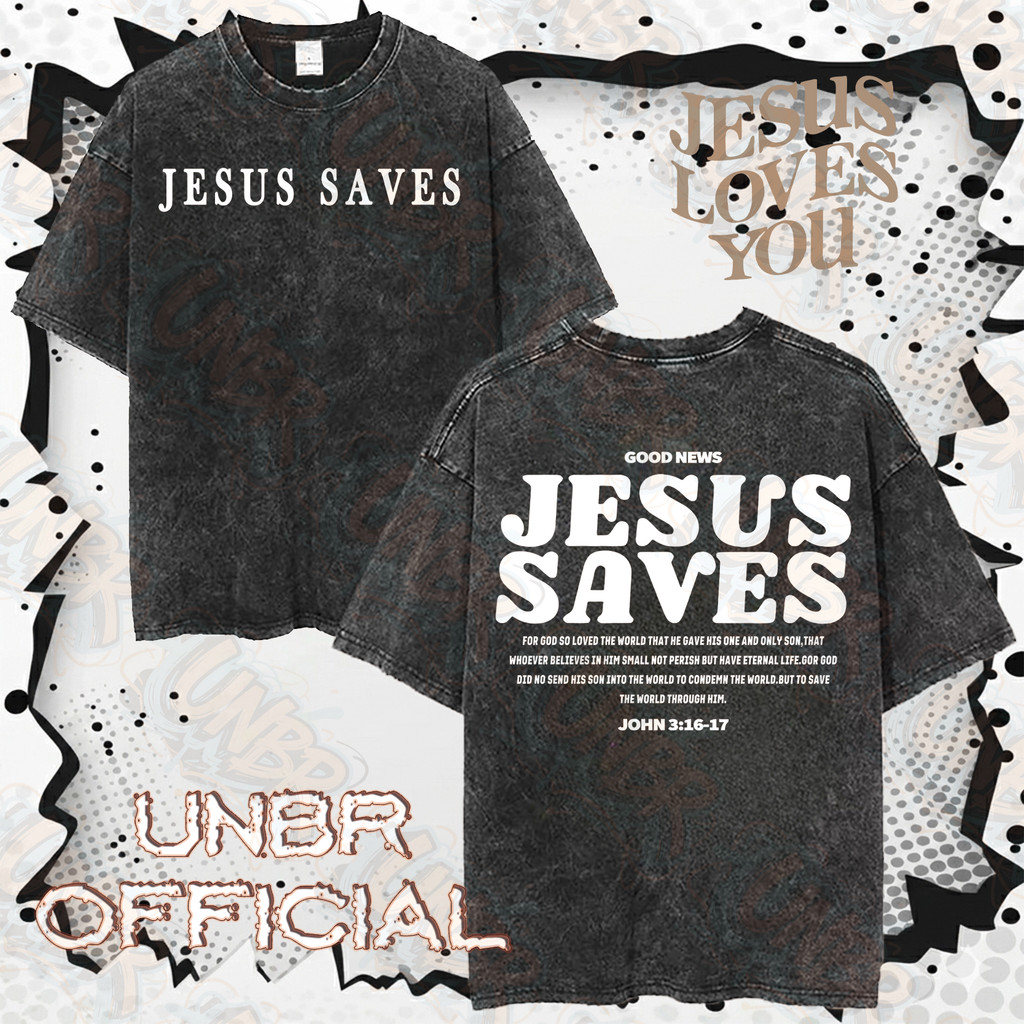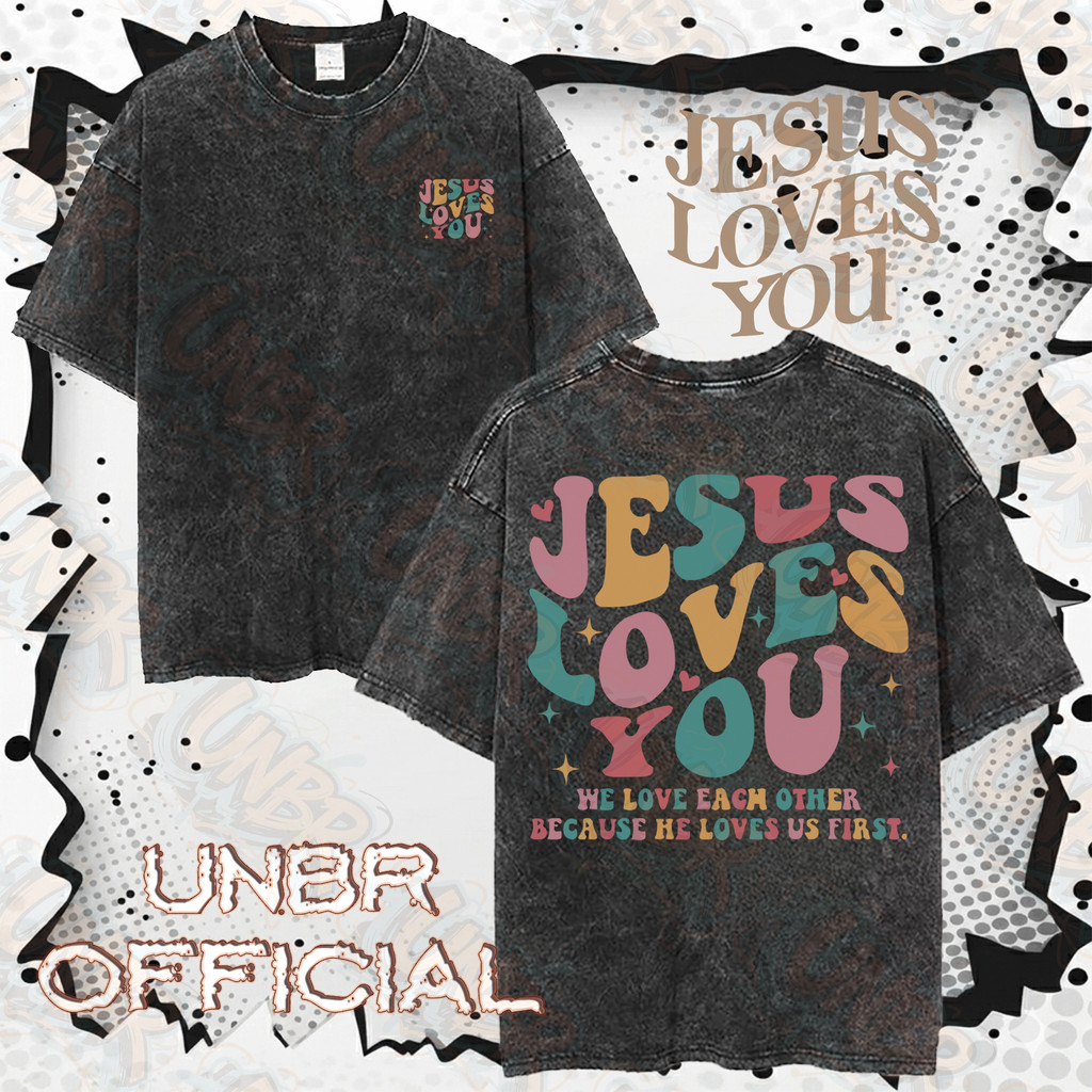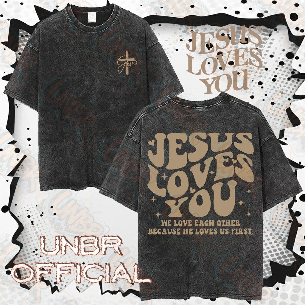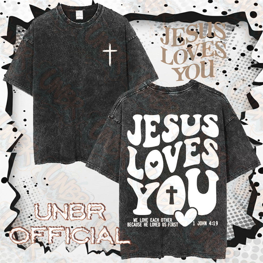 ✅READY STOCK )UNBR Christian Jesus Good News God Loves You T-Shirts Washed Vintage