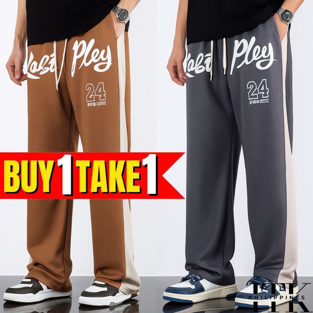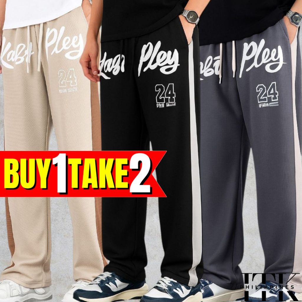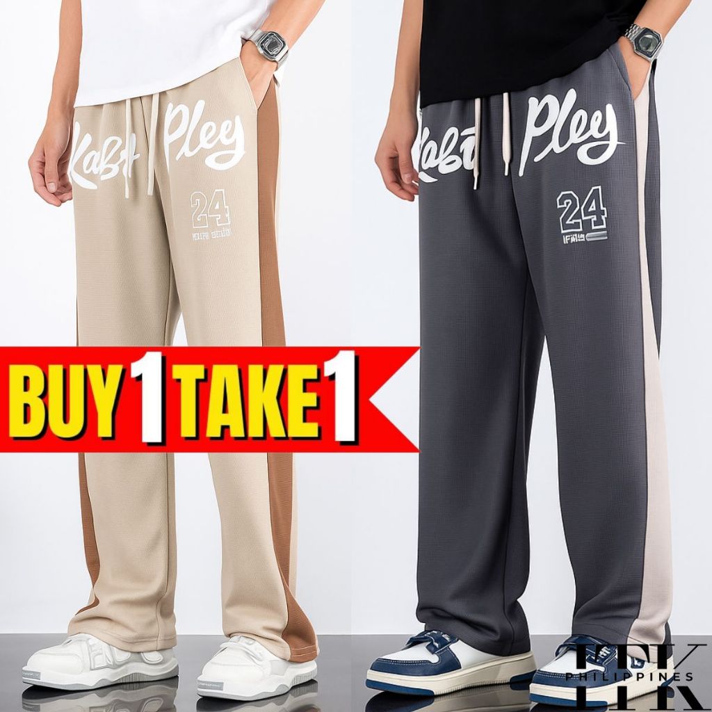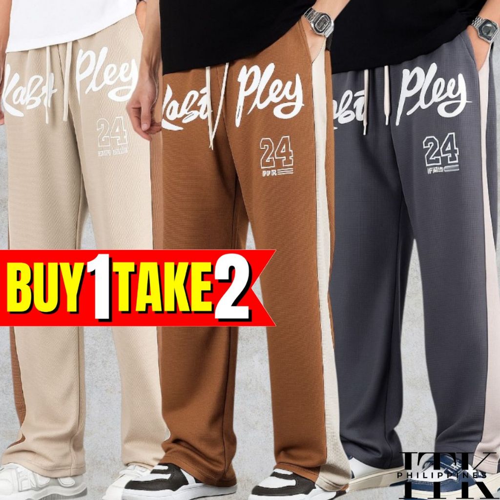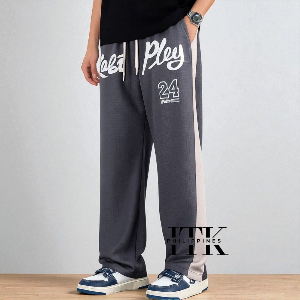 ITK [BUY1TAKE2] WAFFLE PRINTED BAGGY PANTS AESTHETIC WIDELEG PANTS FOR MEN AND WOMEN
