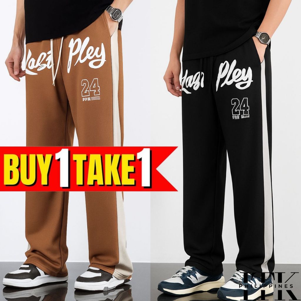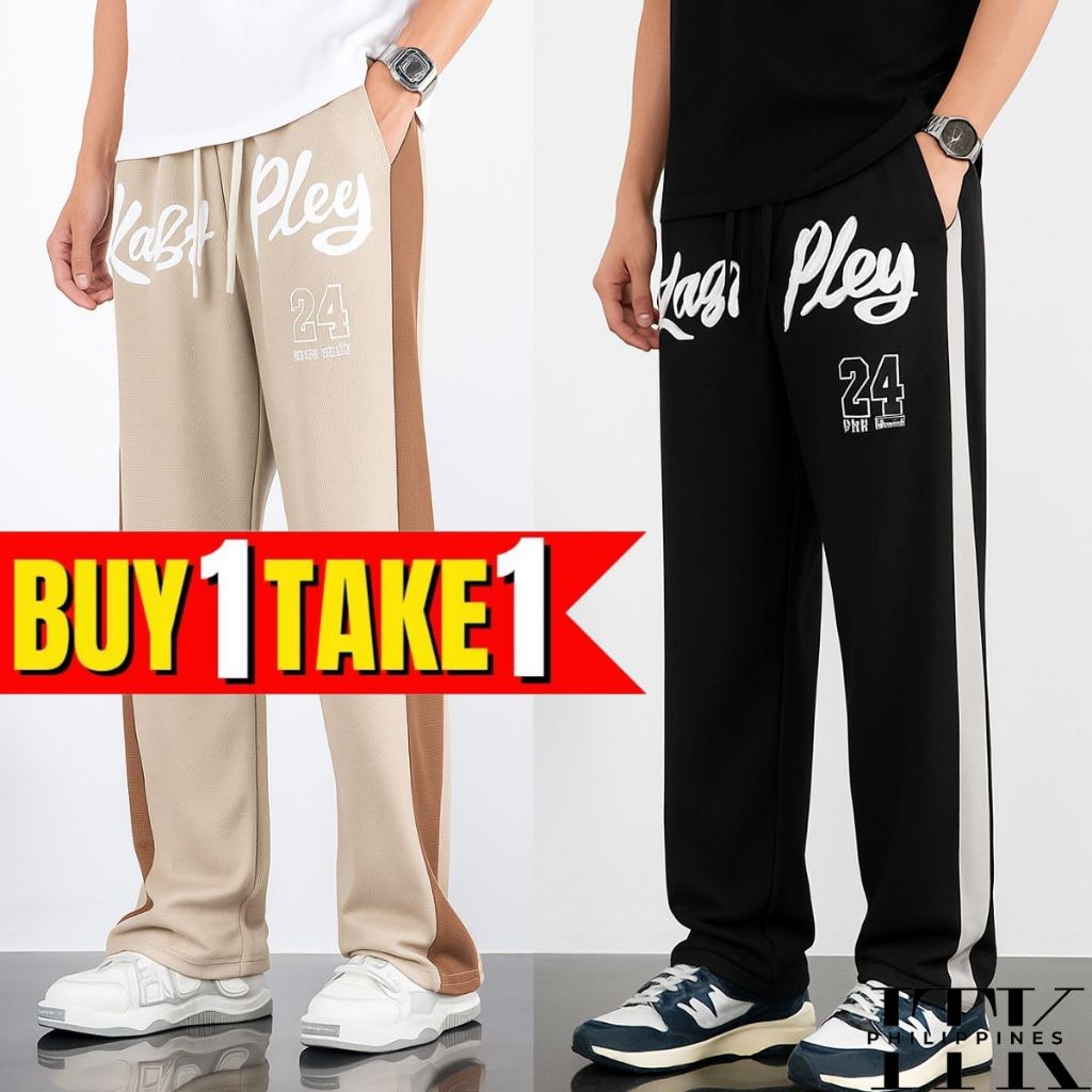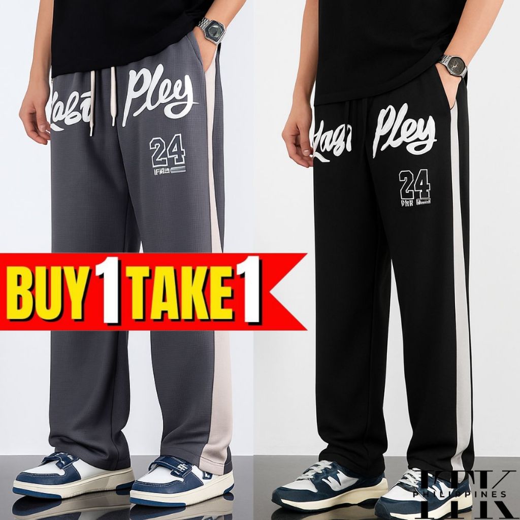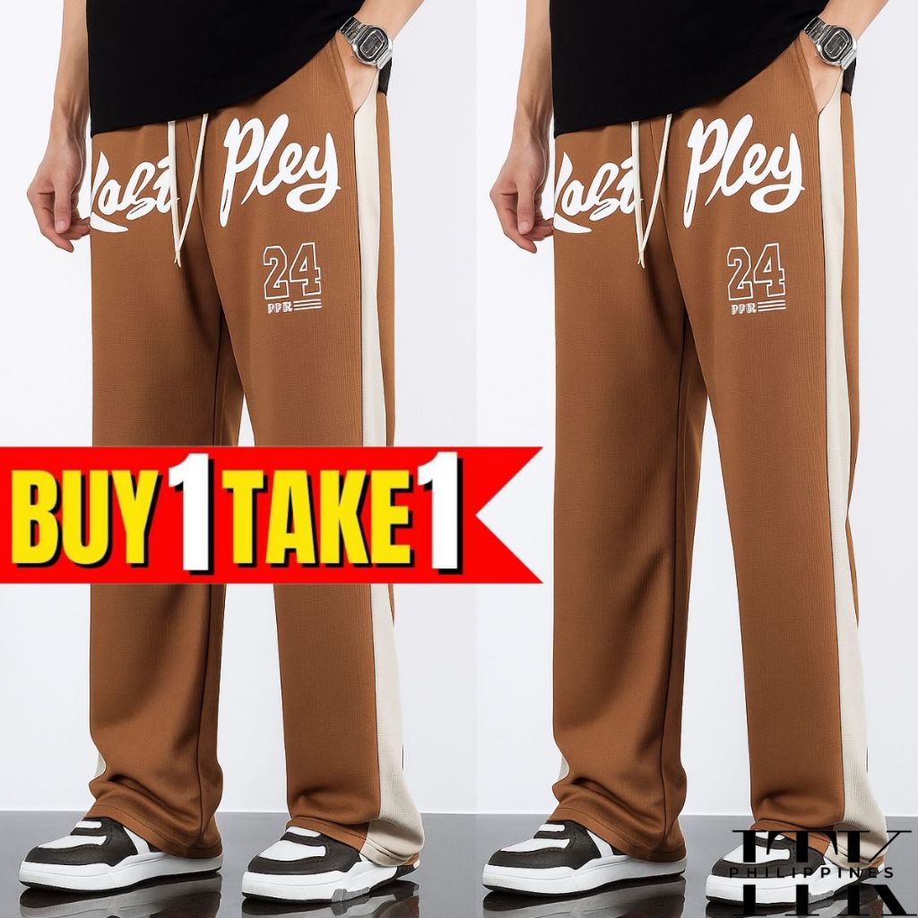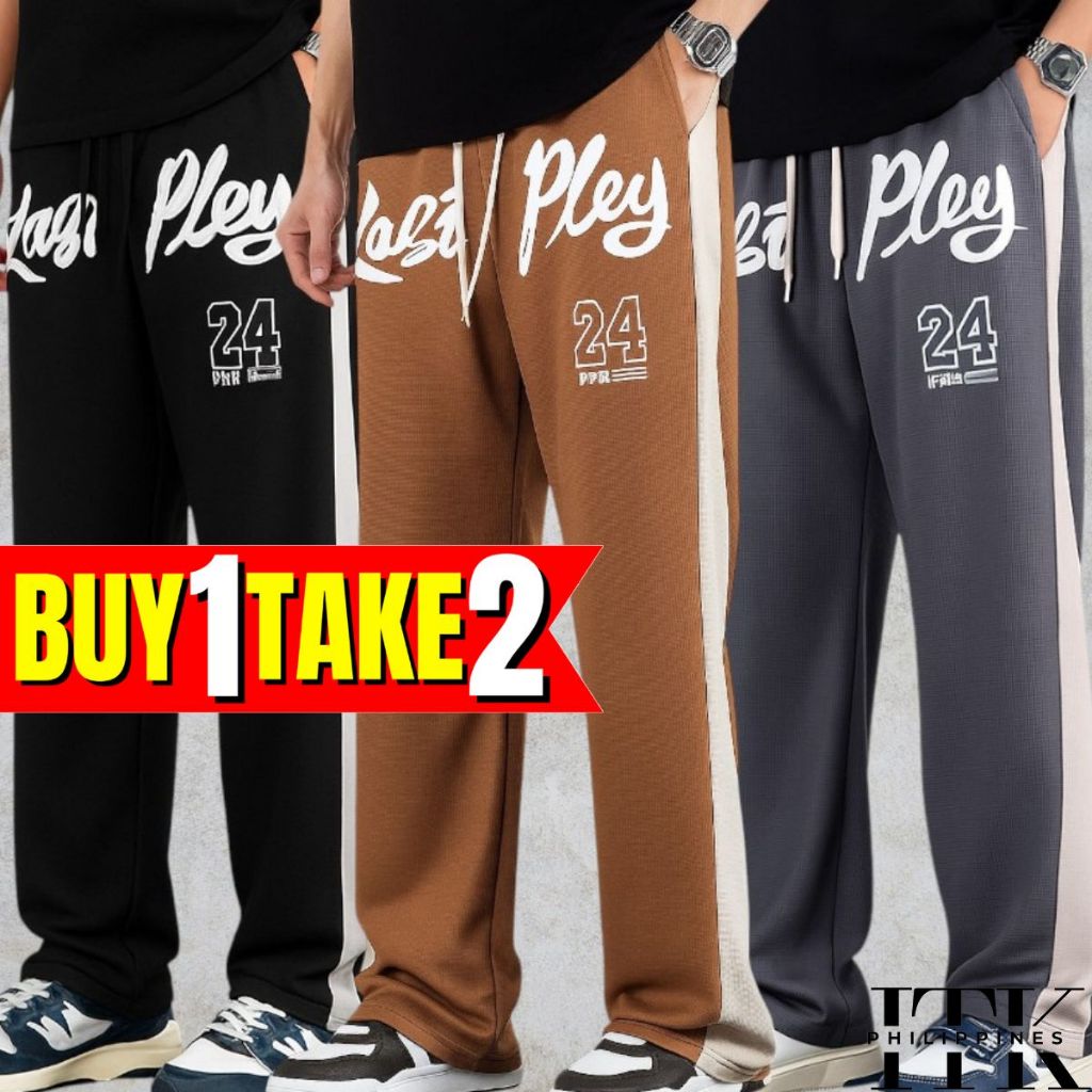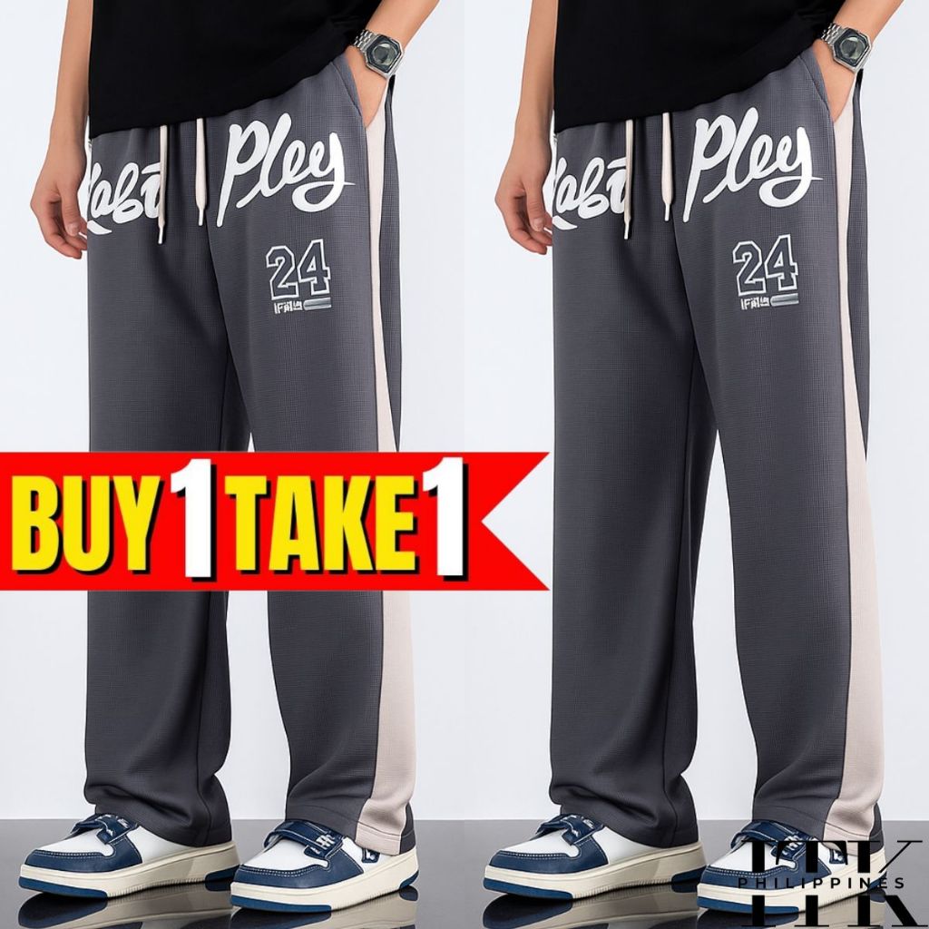 ITK [BUY1TAKE2] WAFFLE PRINTED BAGGY PANTS AESTHETIC WIDELEG PANTS FOR MEN AND WOMEN