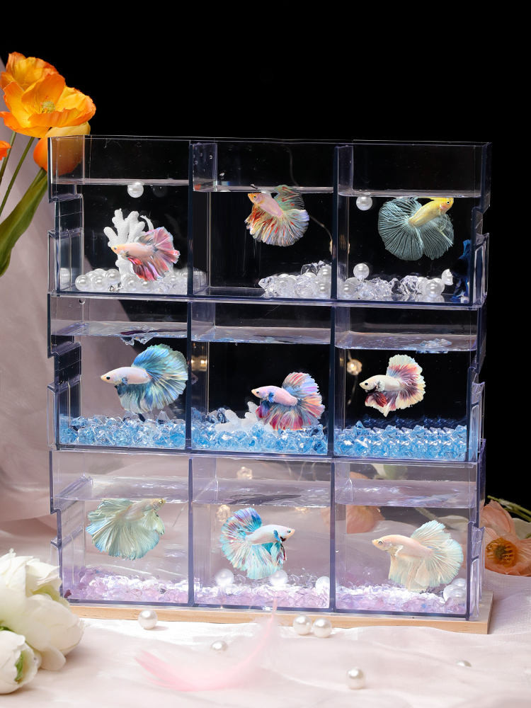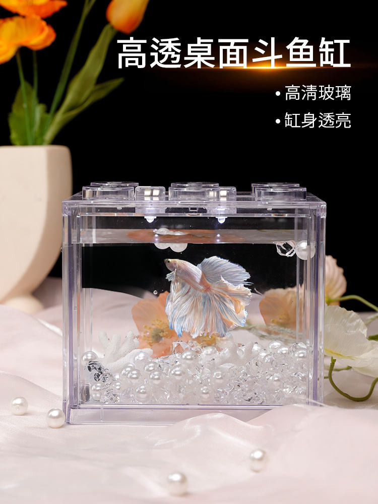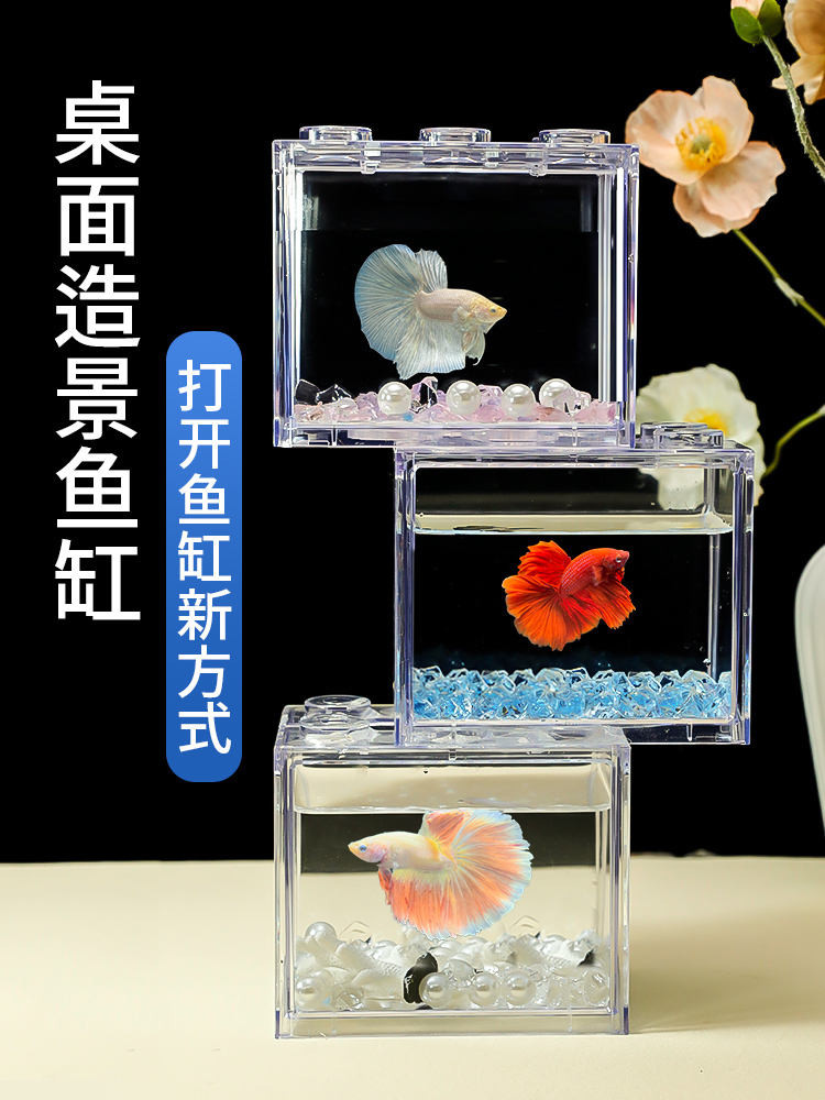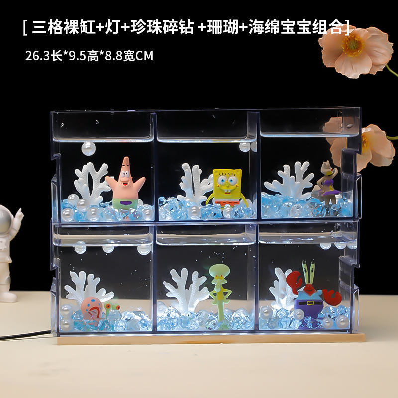 Dou Fish Tank Transparent Acrylic Building Block Box Desktop Small Creative Landscaping With Light