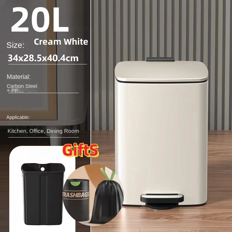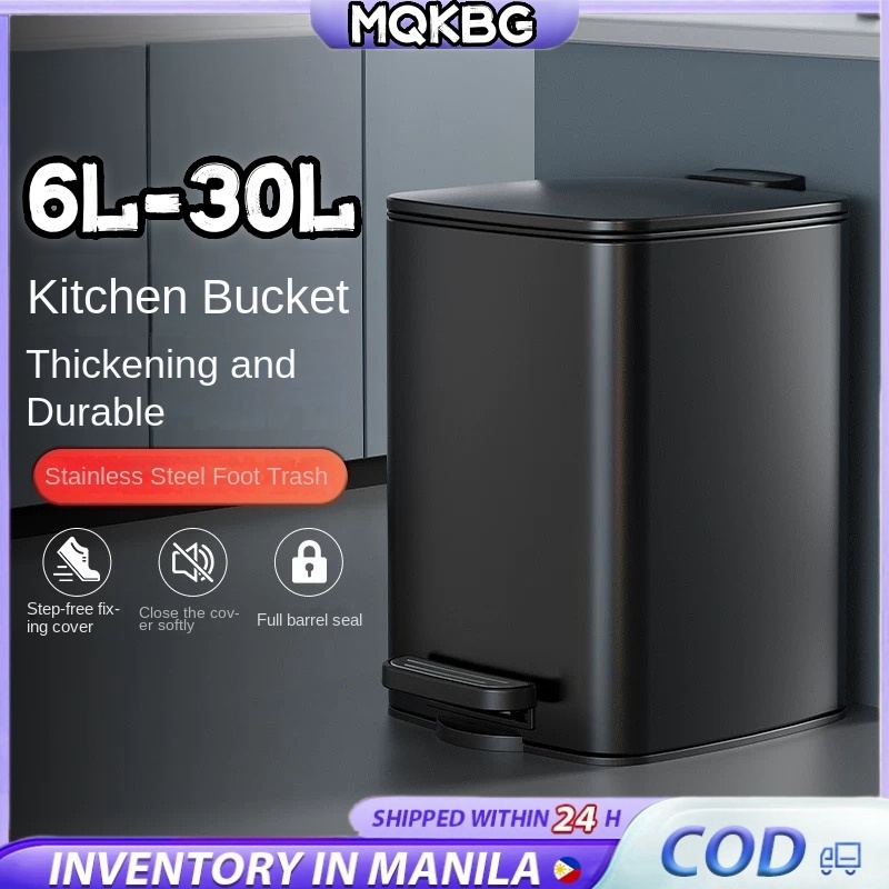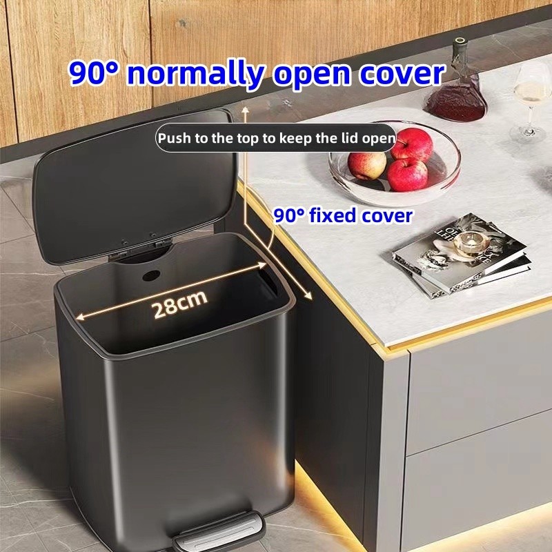 30L Stainless square trash Bin with cover for room garbage can with foot pedal kitchen trash can