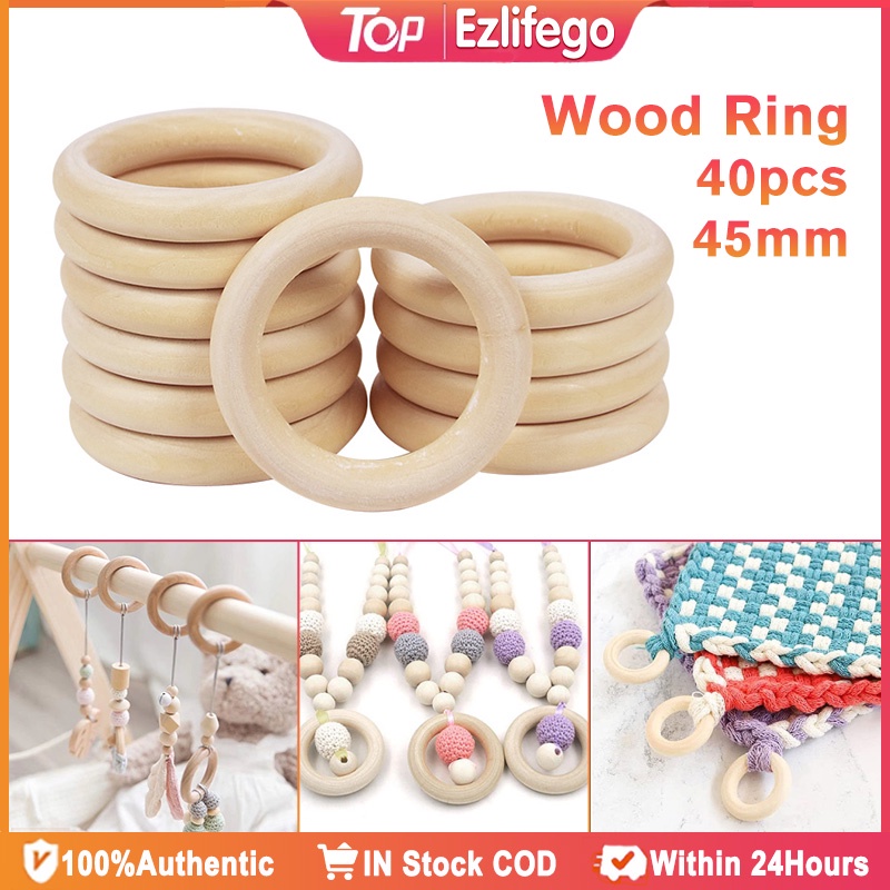 40 Pcs Natural Wooden Ring 45mm Craft Wood Circles for Ring Pendant Jewelry Making