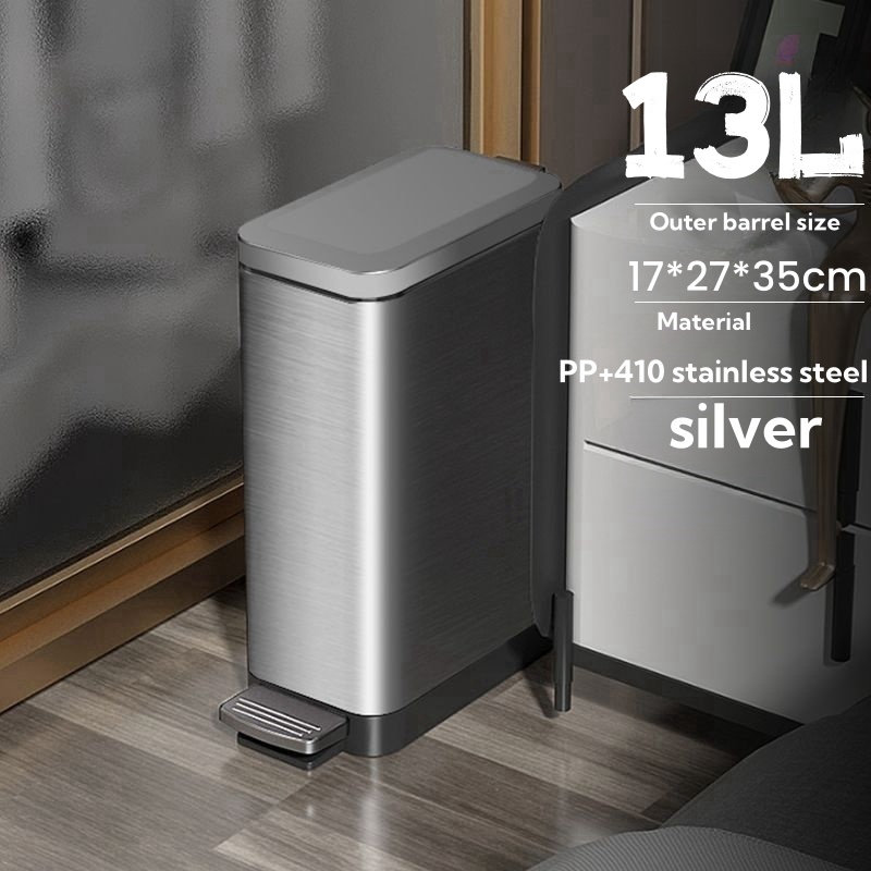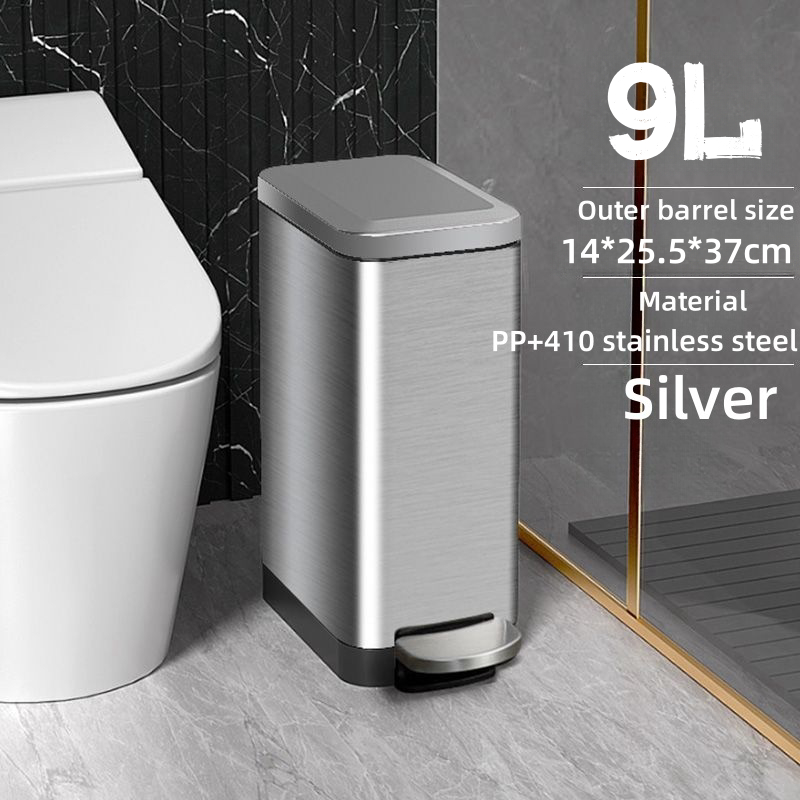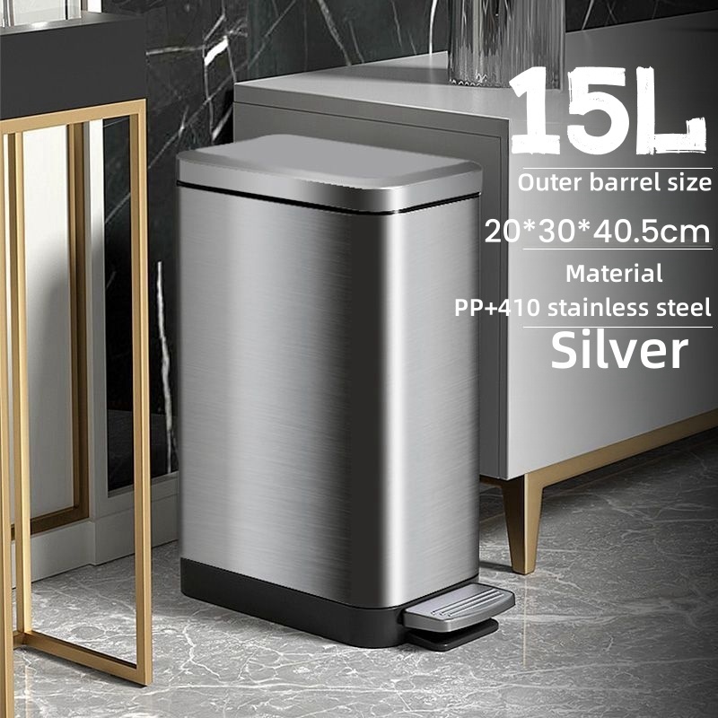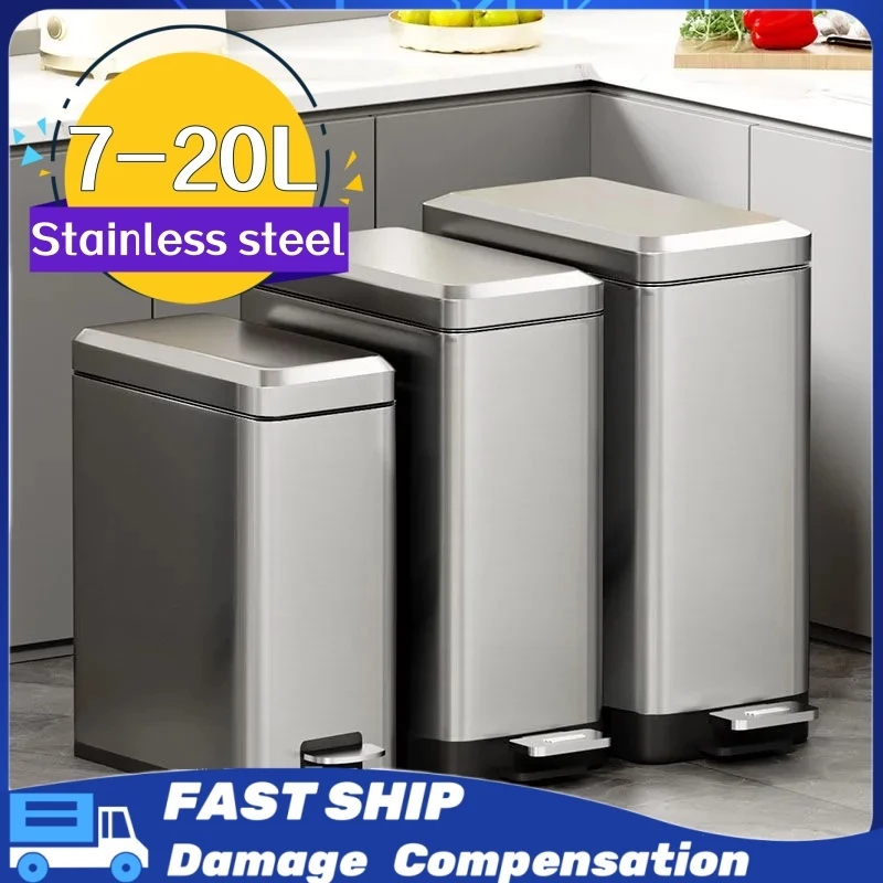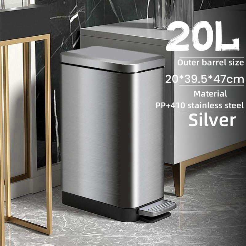 7-20L Stainless steel Pedal Trash Can Household Living Room Bathroom Kitchen Trash bin with Lid
