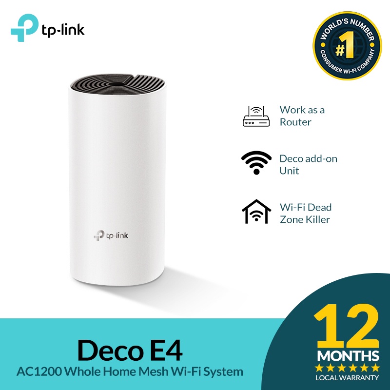 TP-Link | Deco E4 | AC1200 | Wi-Fi 5 | Dual Band | Whole Home Mesh | 0-100 Mbps WiFi Router