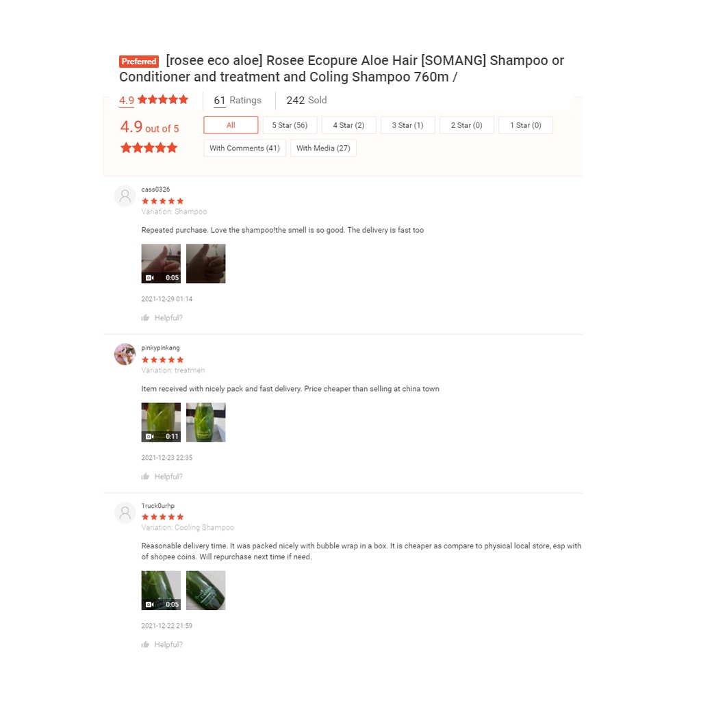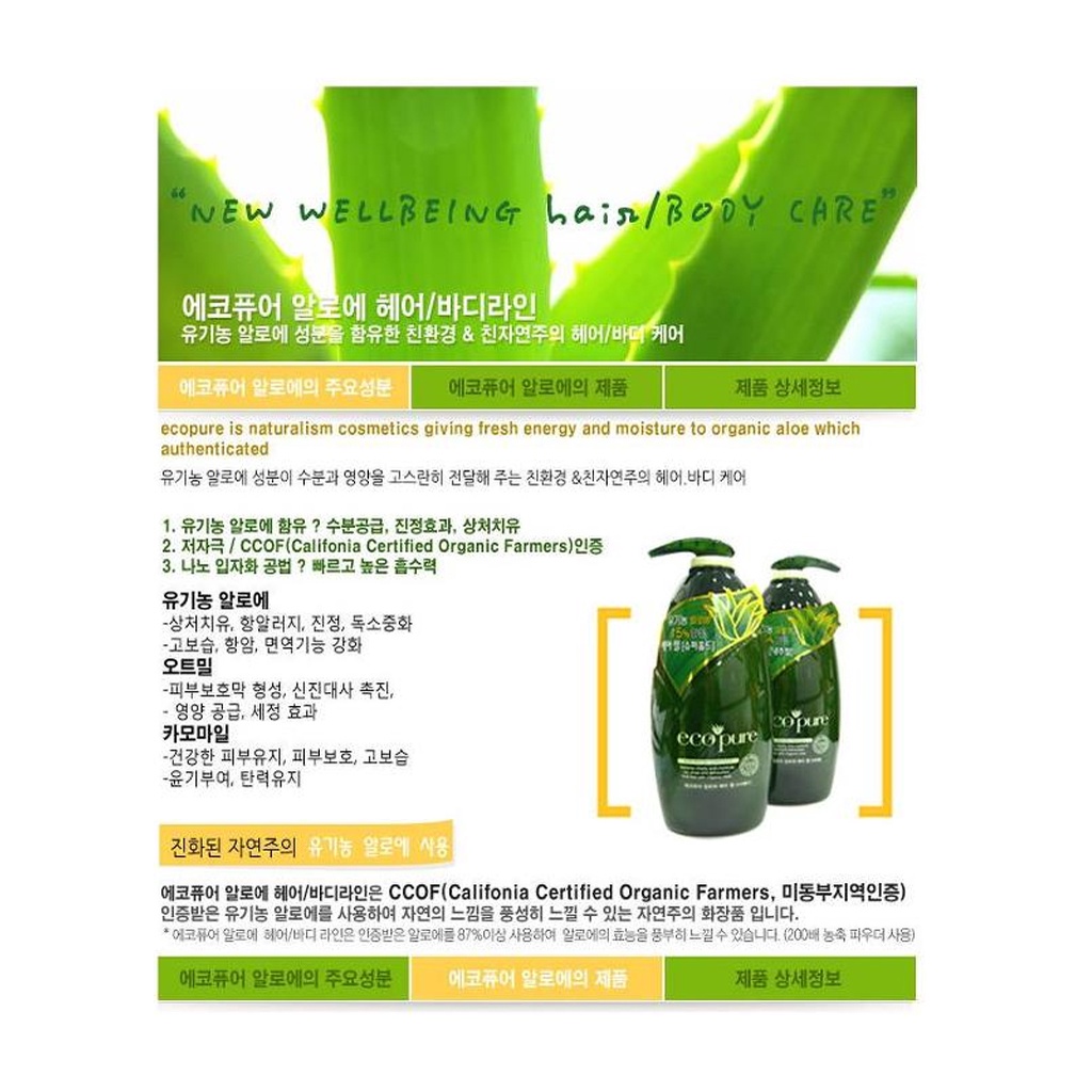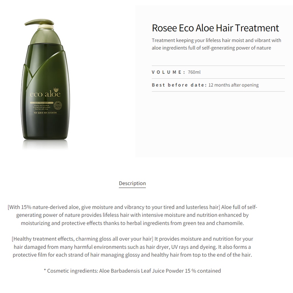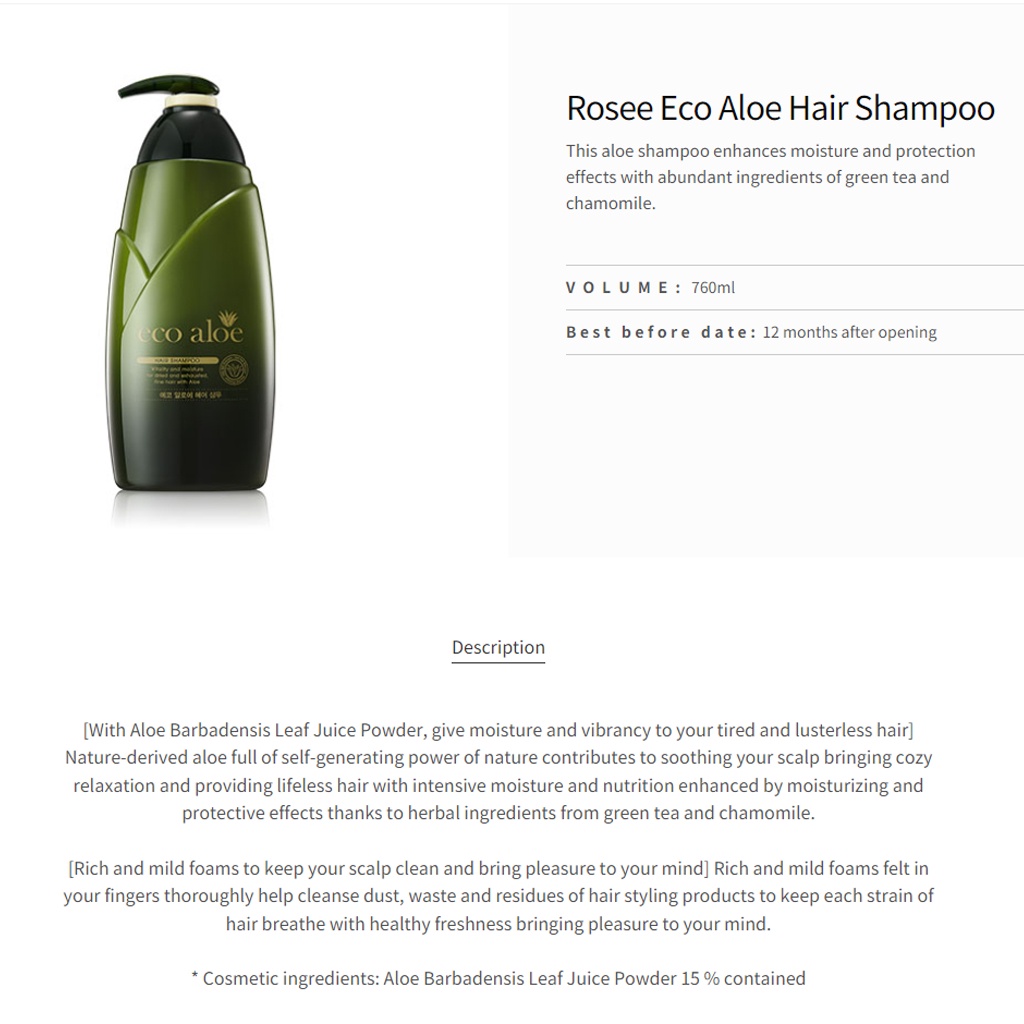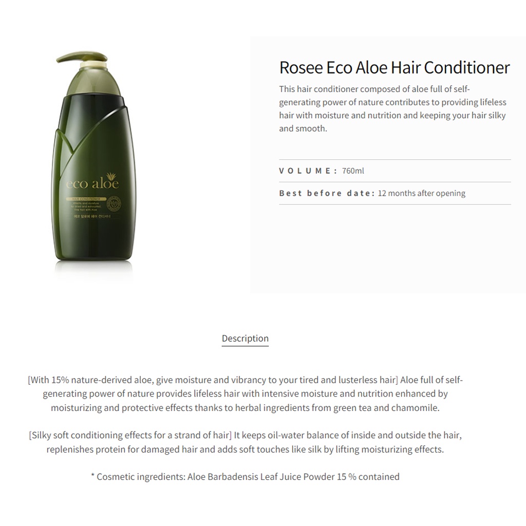 [ ROSEE ] Ecopure Aloe Hair Shampoo or Conditioner and treatment and Coling Shampoo 760m /