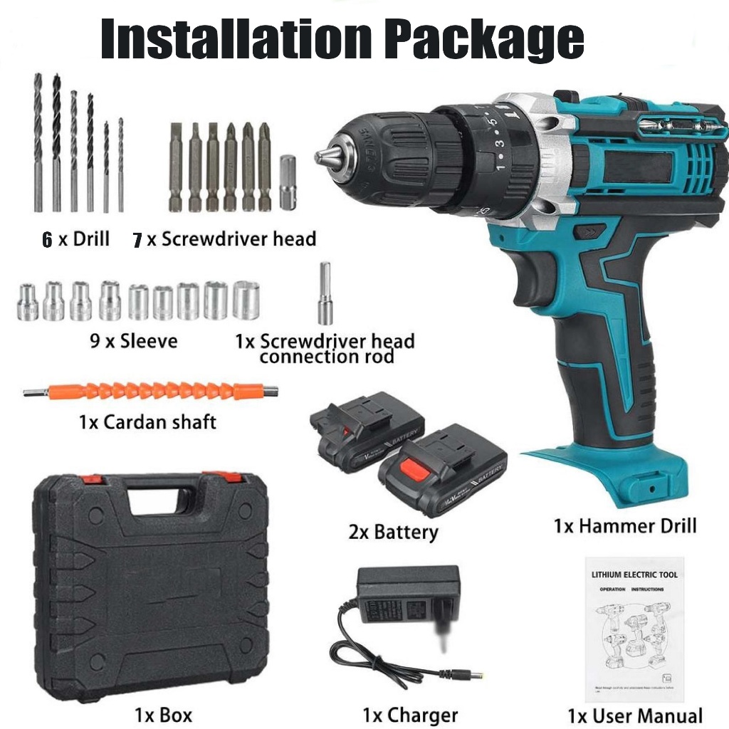 Cordless Electric Drill Impact Portable Screw Drill Accessories Impact Drill Screwdriver