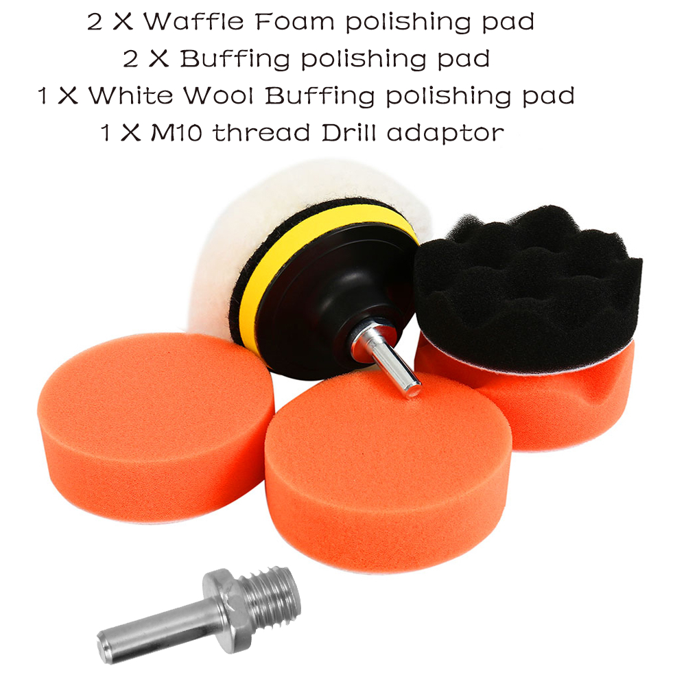 5pcs 6 inch Buffing Polishing Pads Wool Polisher Drill Wheel Mop Kit for Car (3x wool polishing pads; 1x sticky disc; 1x rod)