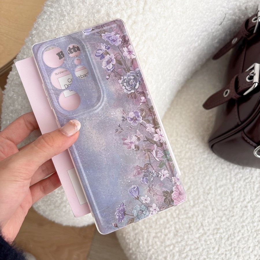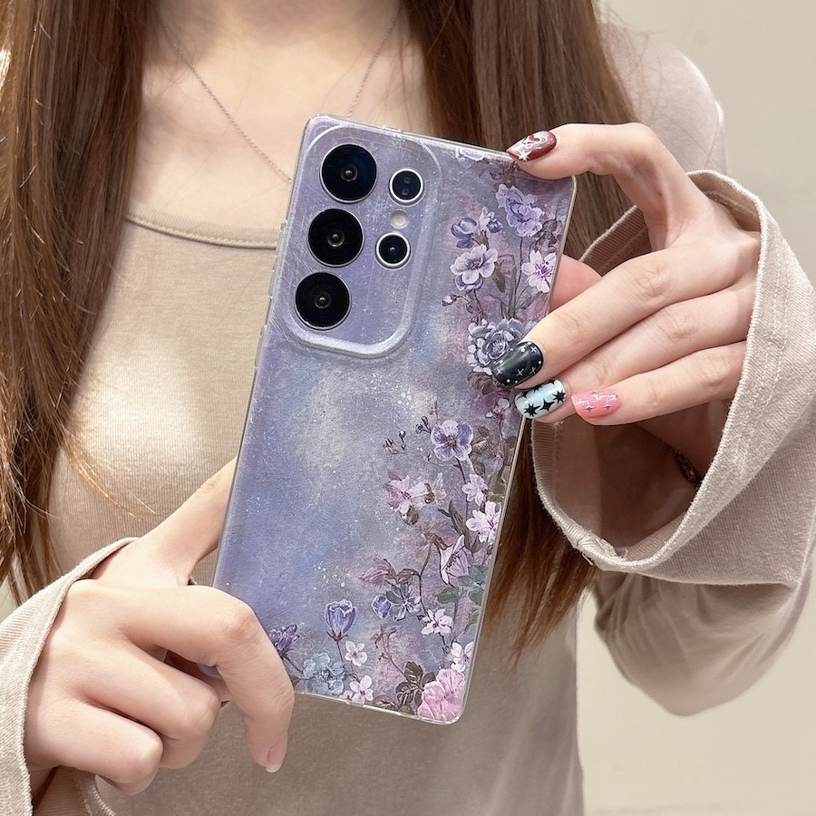 Purple Oil Painting Flower Phone Case For OPPO A6X A6 A3 A5X A5 Pro A3X A98 A57 A60 A96 A76 A17 A17K A18 A38 4G A77s A16 A74 A95 A57 2022 5G Soft Shockproof Cover