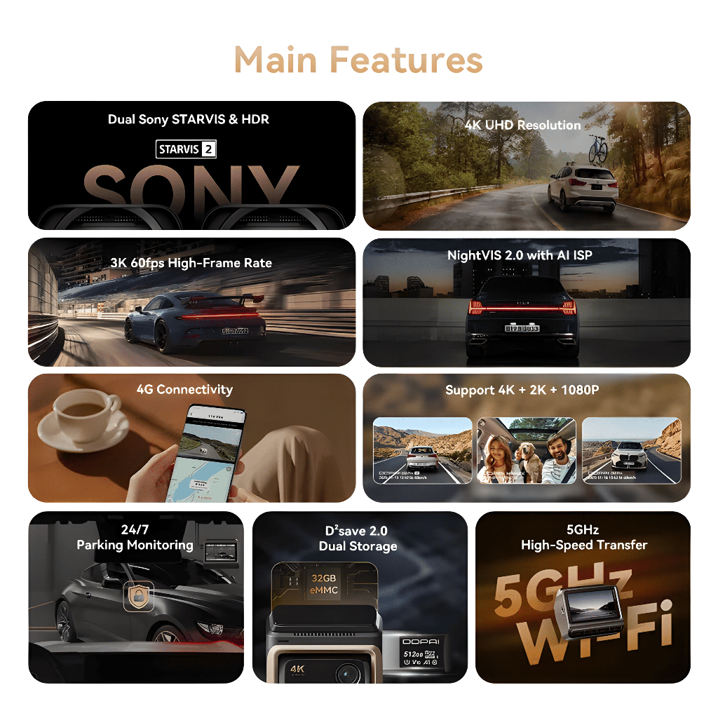 DDPAI Z60 Pro 4K UHD Dual Sony STARVIS 2 HDR Super Capacitor Dash Cam with 4G Connectivity GPS