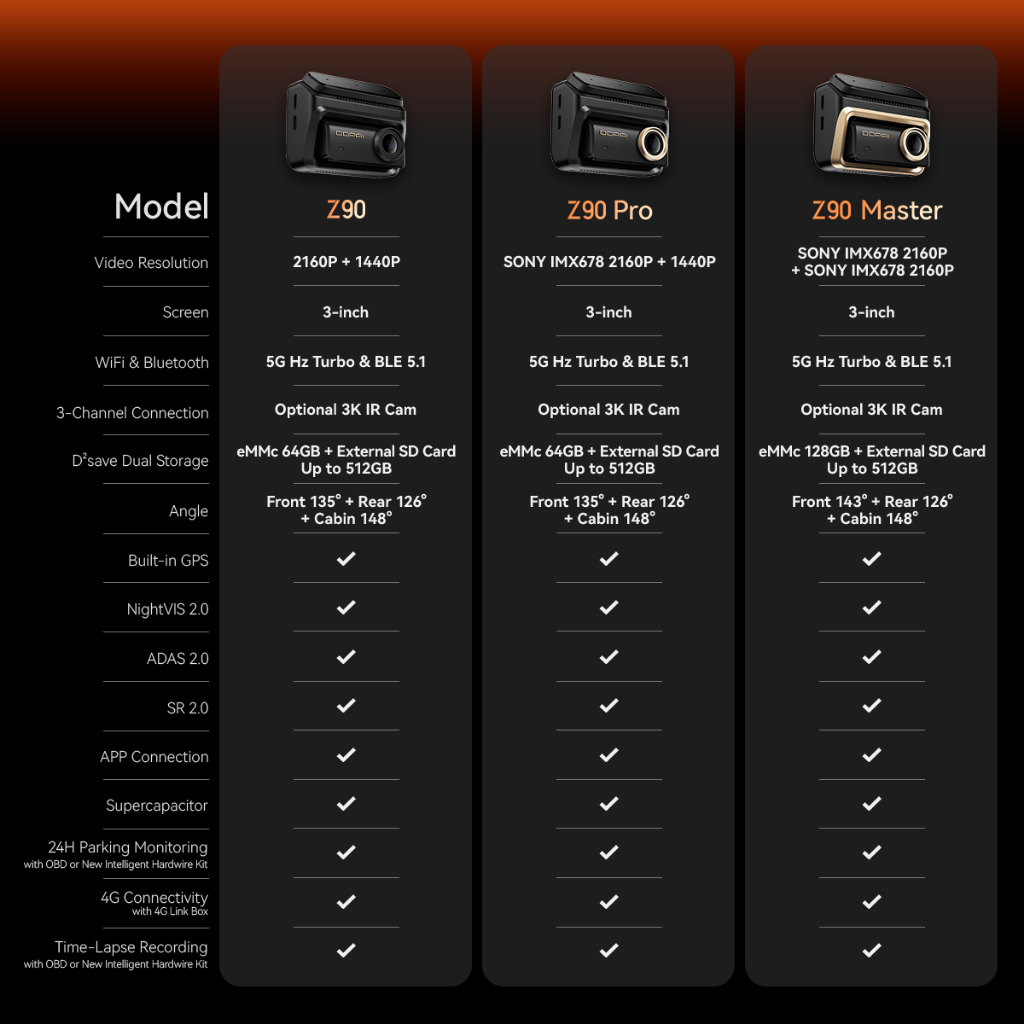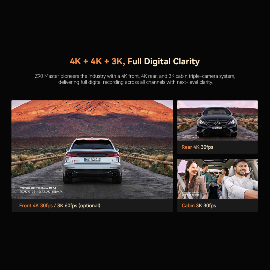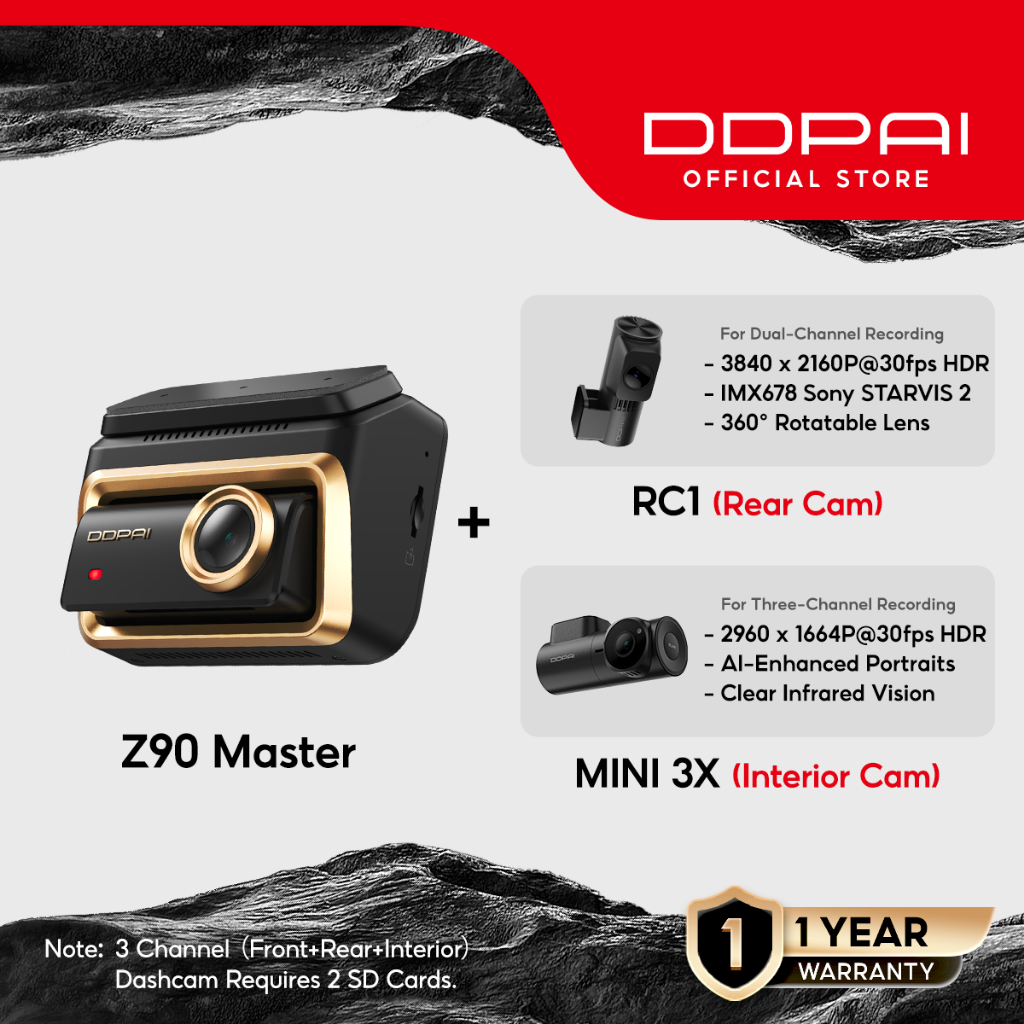 DDPAI Z90 Master World 's First 4K + 4K +3K 3-Channel HDR Sony Starvis 2 Series Dash Cam