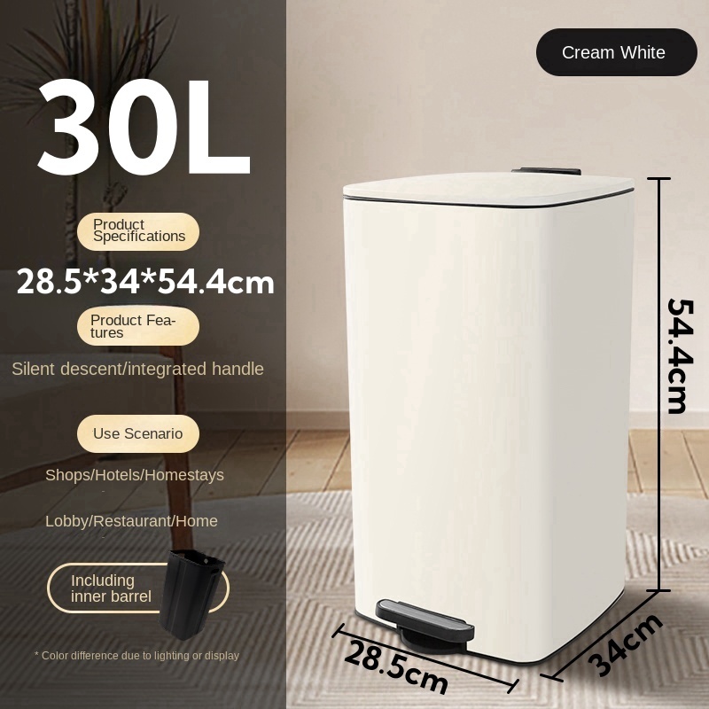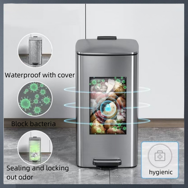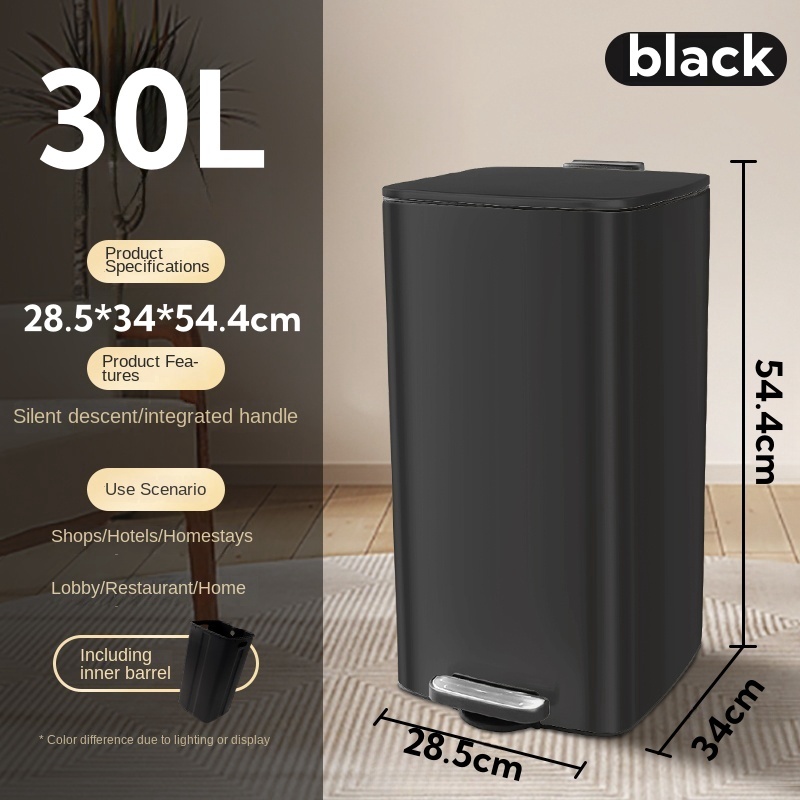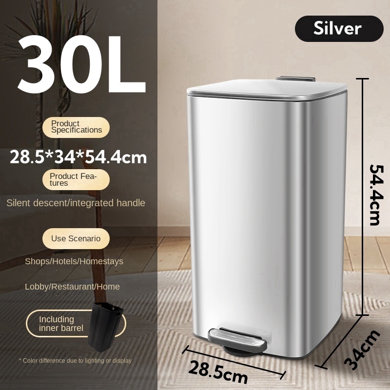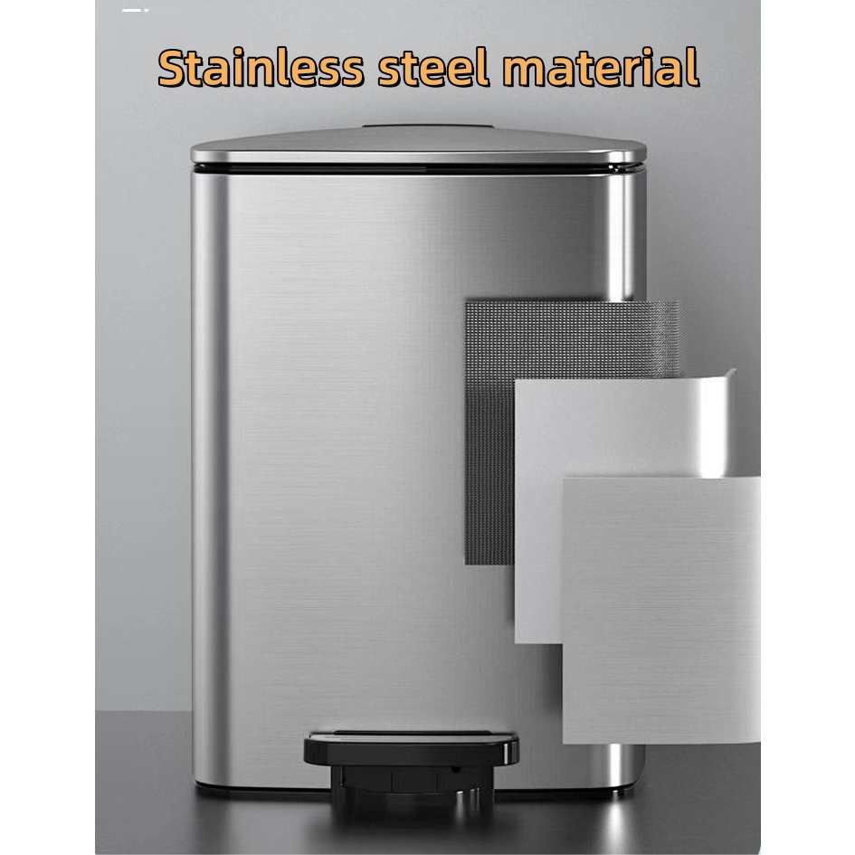 20L/30L office Stainless Steel Trash Bin with Foot Lid | Kitchen Dustbin | Removable | Silent Lid