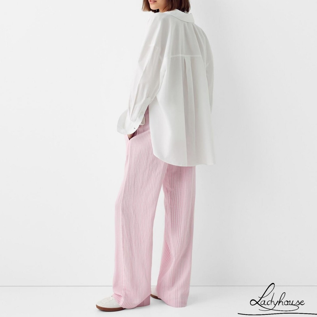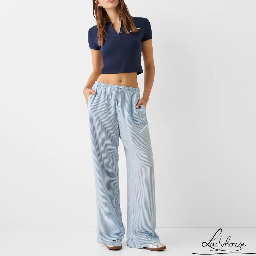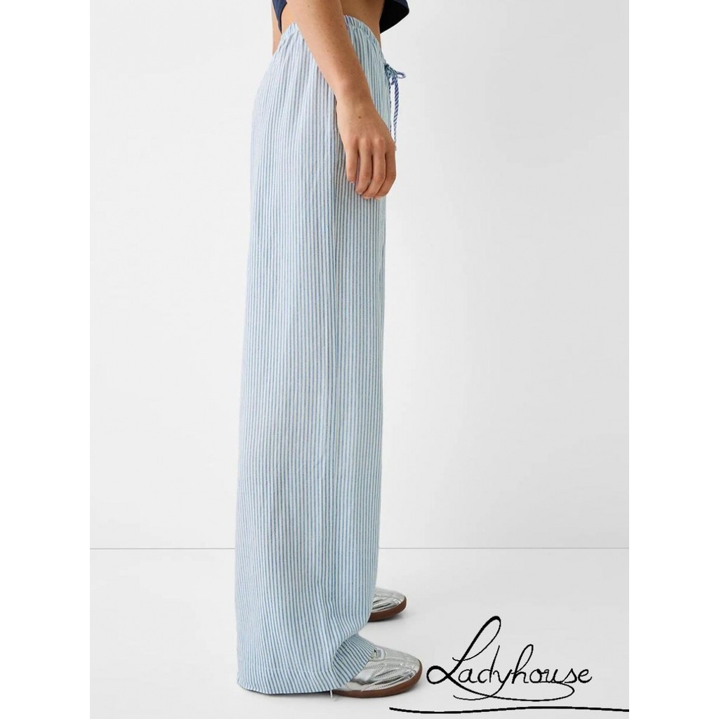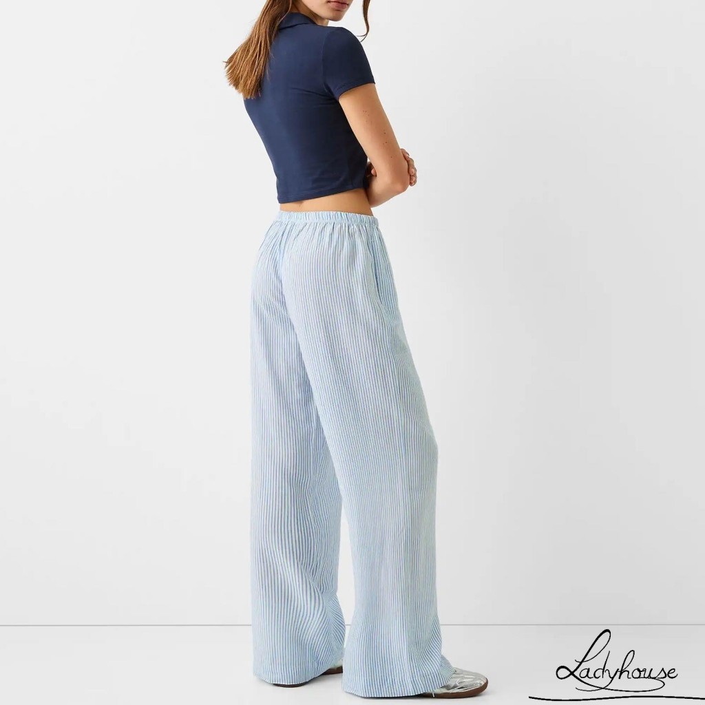 LDD-Women Striped Pants Elastic Waist Loose Trousers Streetwear Loungewear with Pockets