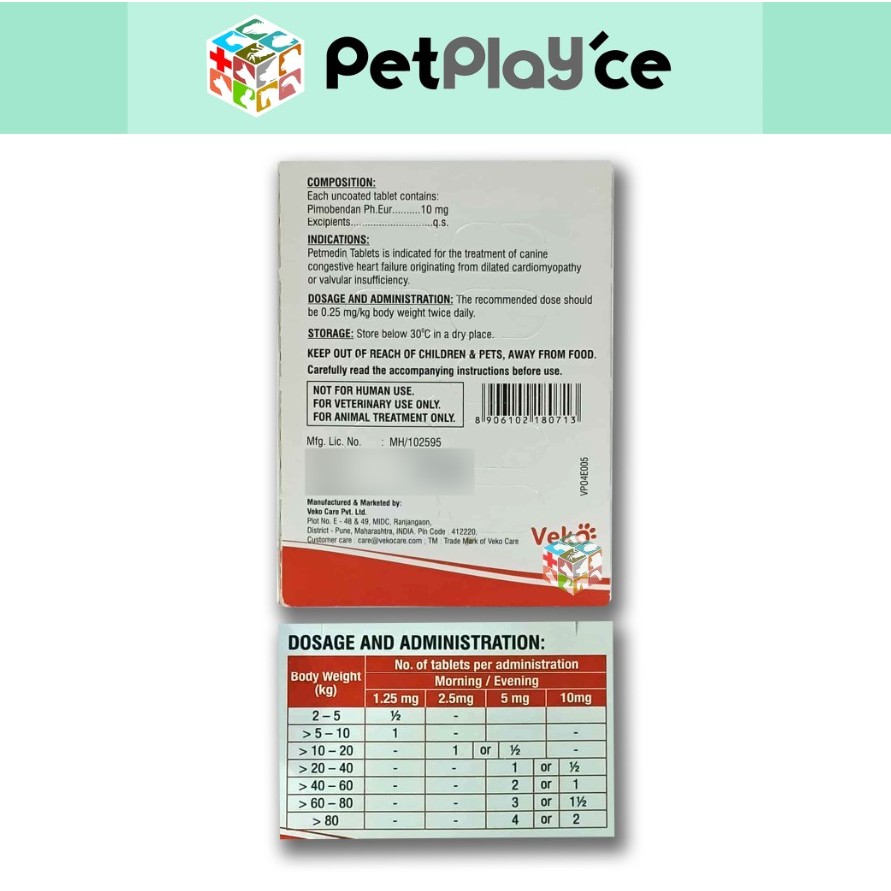 Veko Petmedin Pimobendan Tablet 1.25mg / 2.5mg / 5mg / 10mg per 10pcs Tablet Meds Vaxi