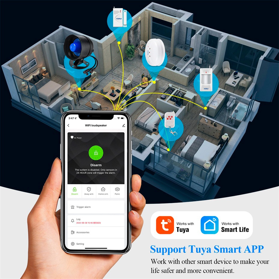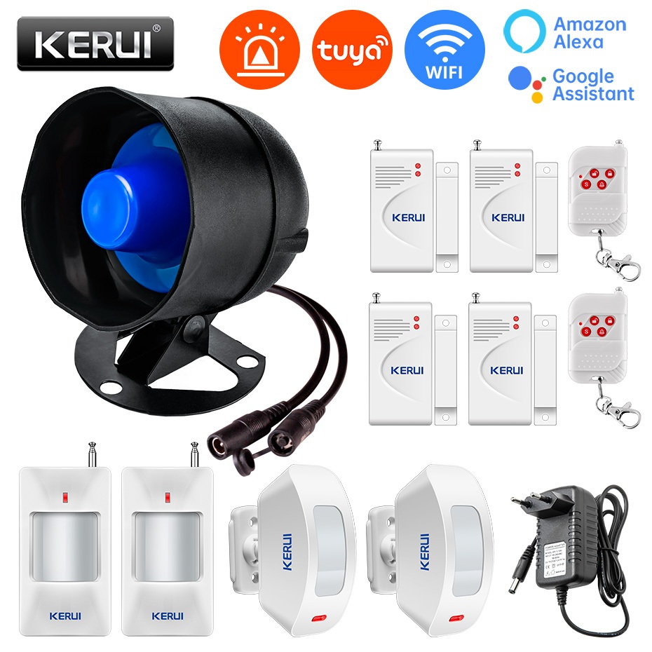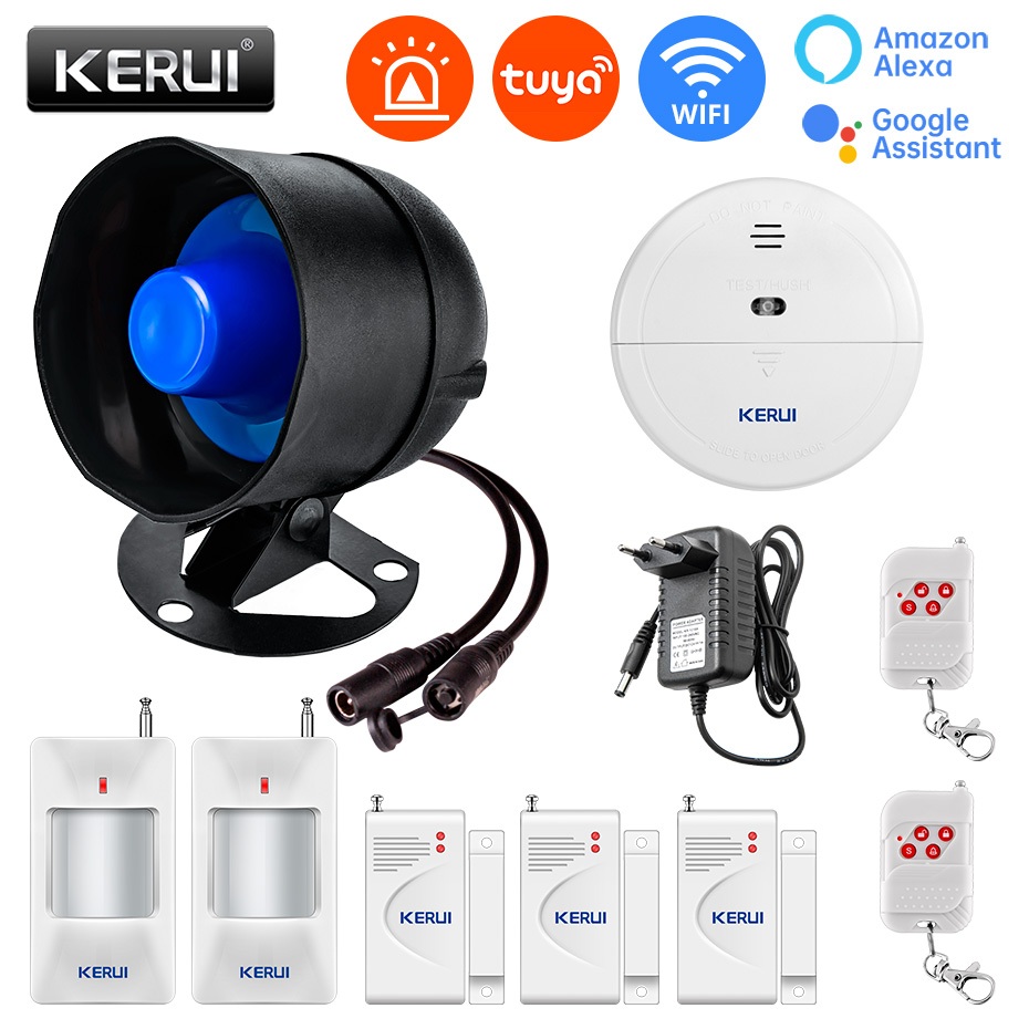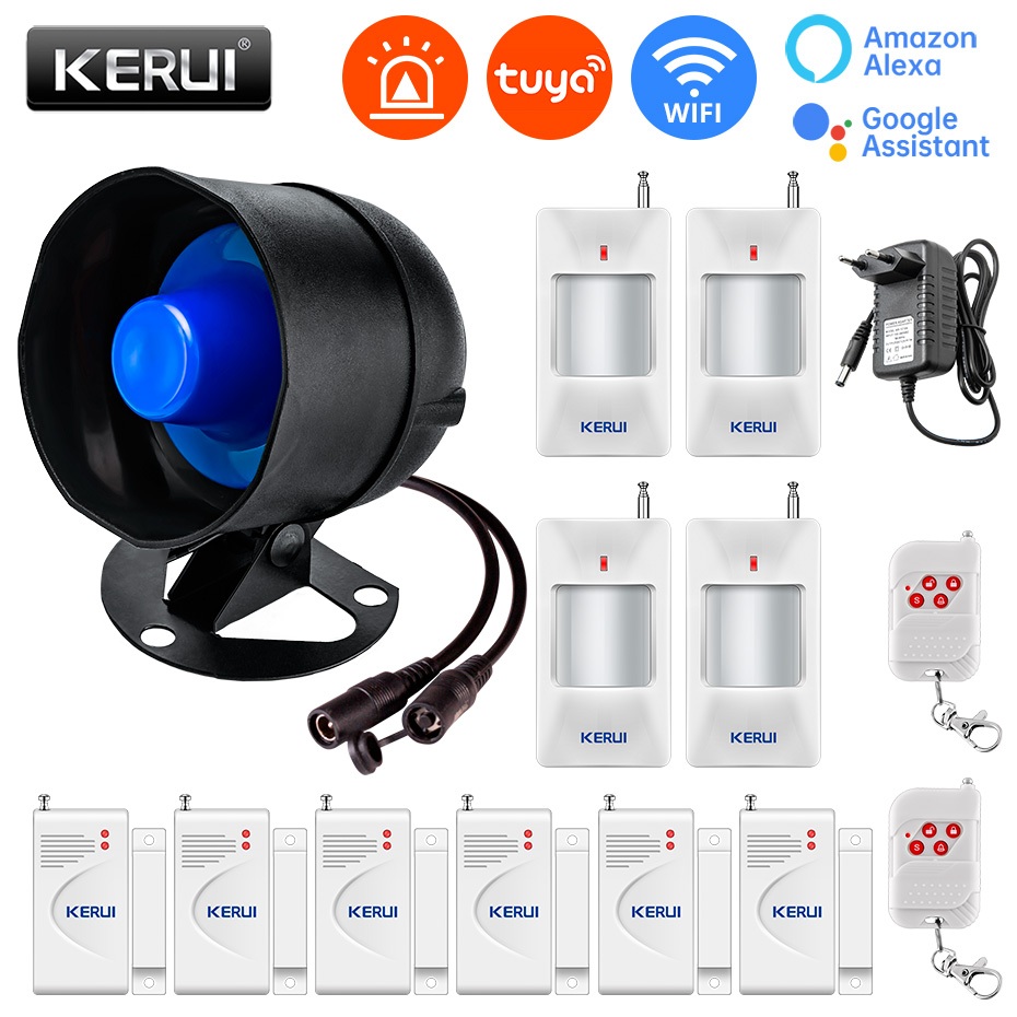 KERUI 120db Loud Sound Alarm System Siren Tuya Smart WIFI Wireless Security Alarm Kit Home Burglar Motion Door Sensor Alexa