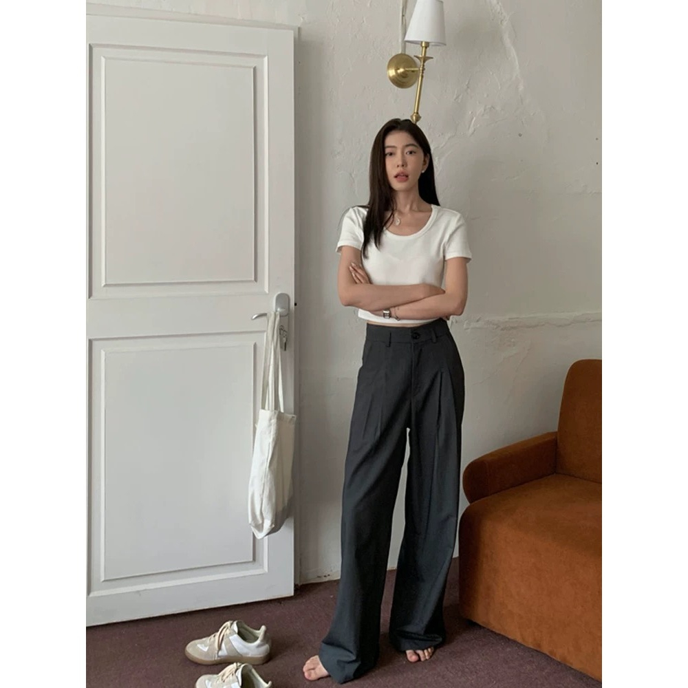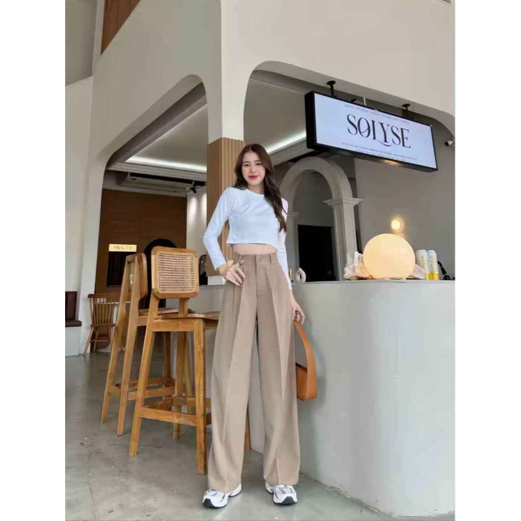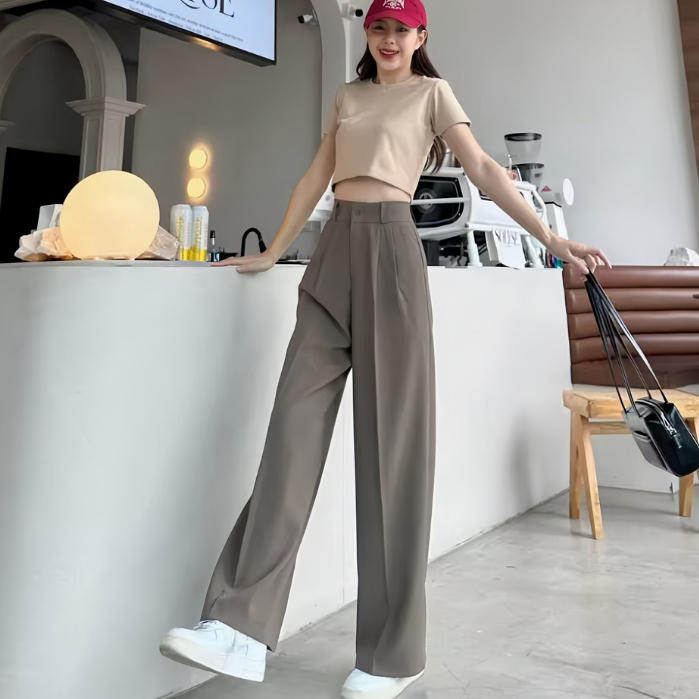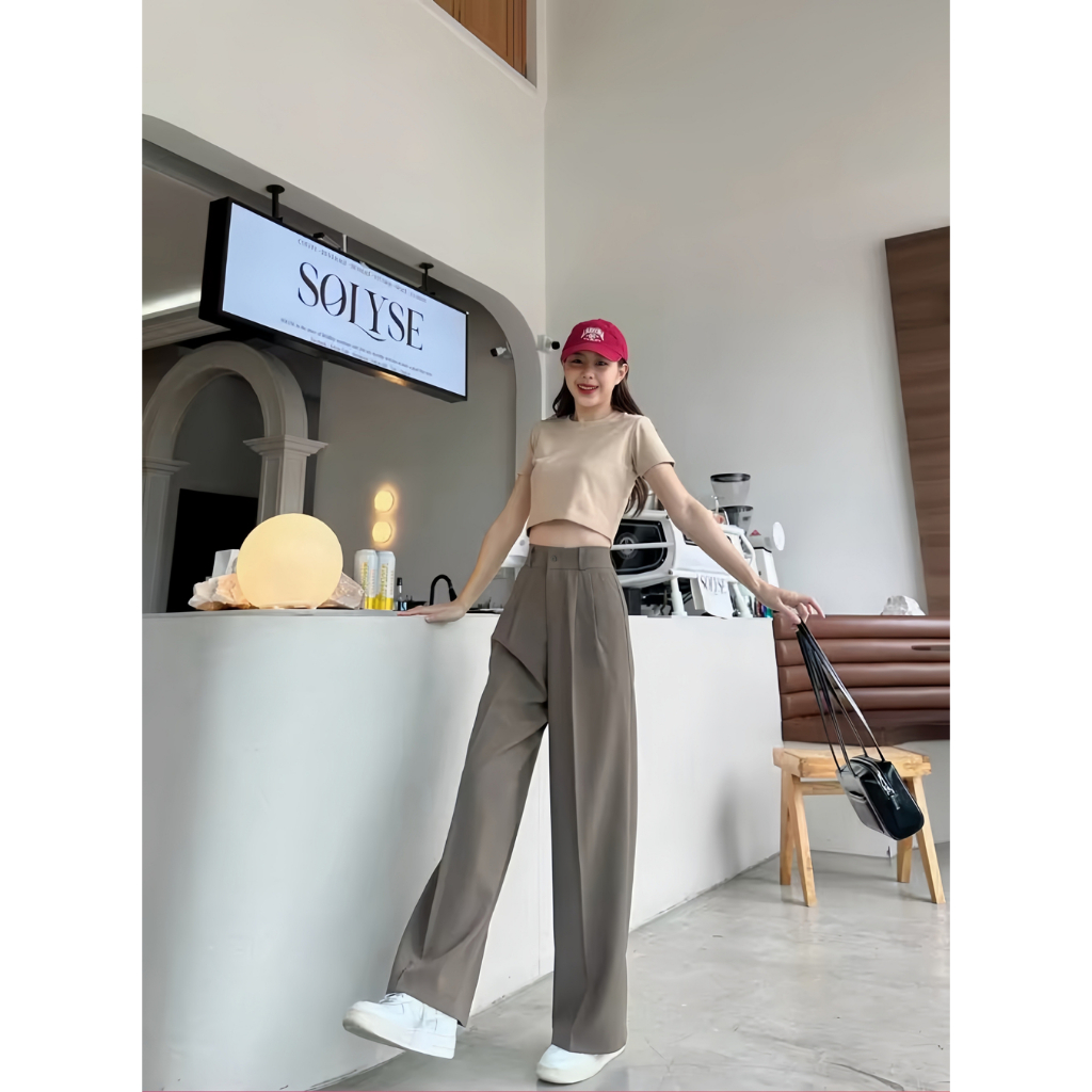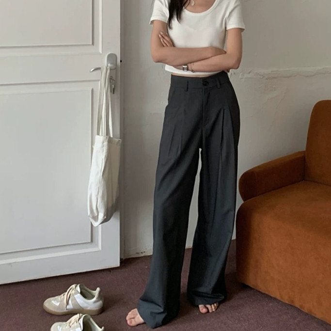 Bosen/NOGARTER Wide Leg Trousers Pants Womenswear Office Student Bottom For Women Two Pockets *k9902