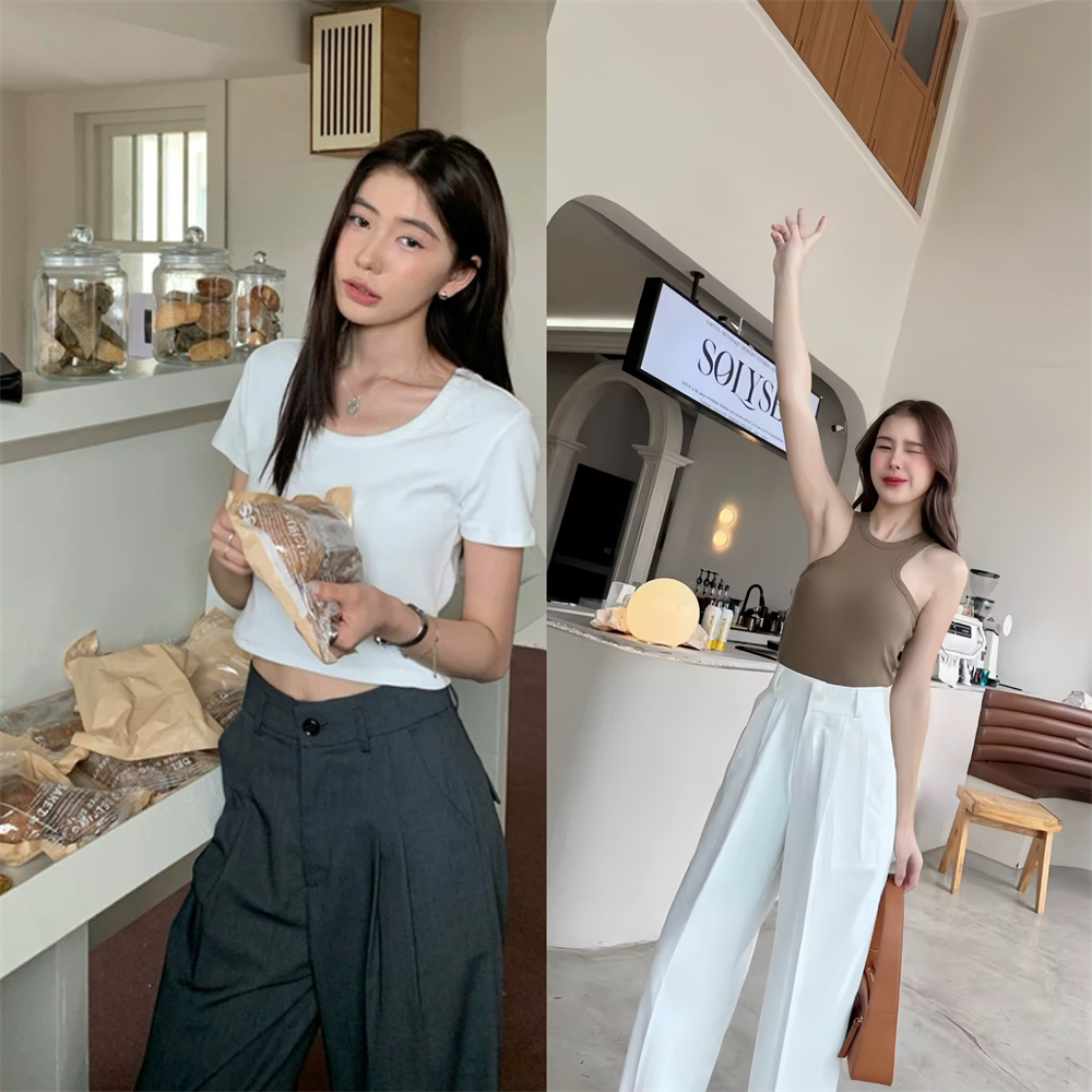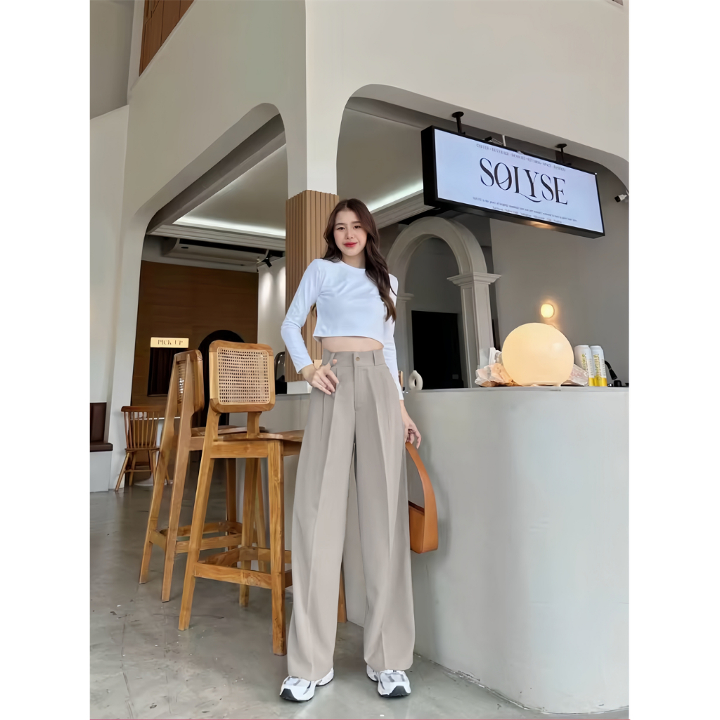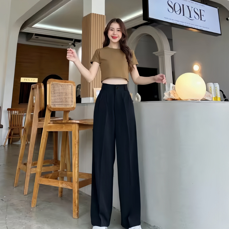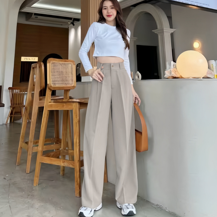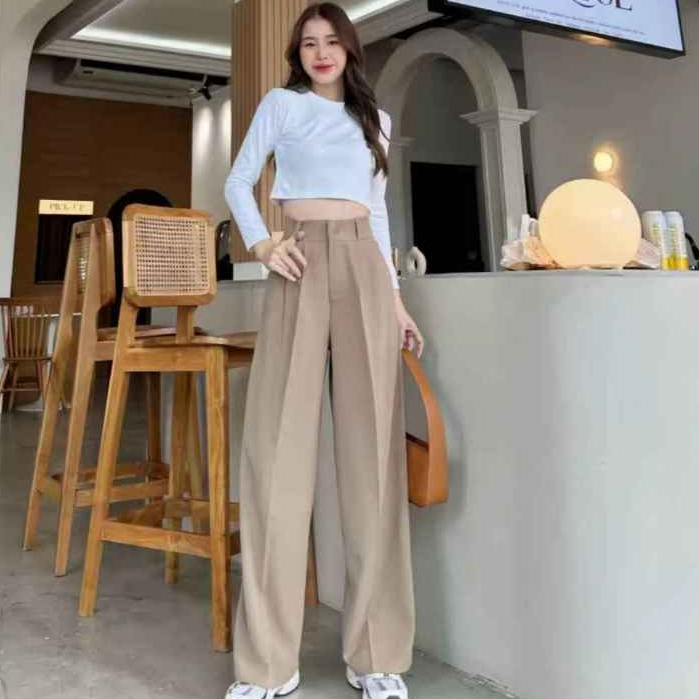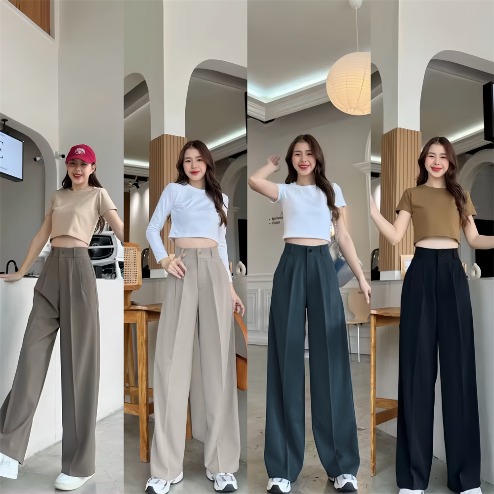 Bosen/NOGARTER Wide Leg Trousers Pants Womenswear Office Student Bottom For Women Two Pockets *k9902