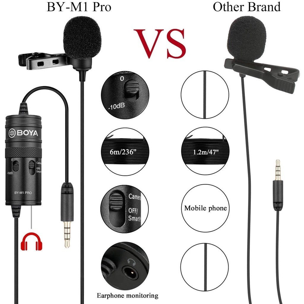 BOYA BY-M1 Pro Omnidirectional Lavalier Microphone Clip-on Lapel Mic for Smartphones & PC