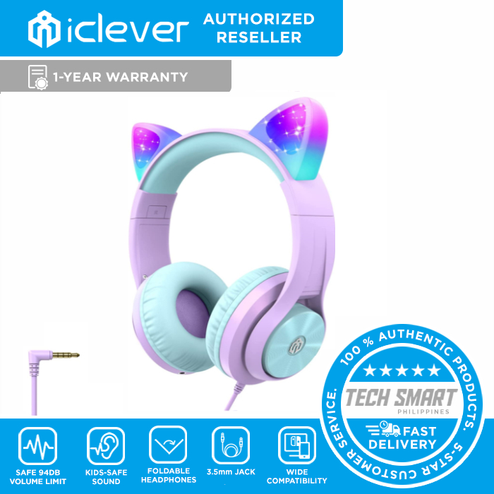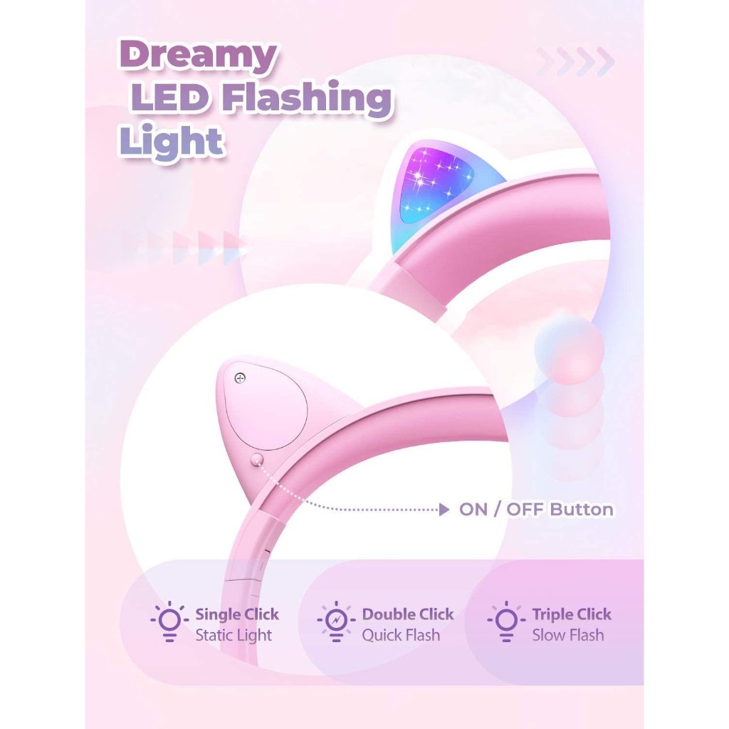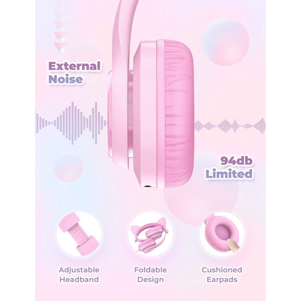 iClever Cat Ear Led Light Up Kids Headphones, HS20 Wired Headphones -Shareport- 94dB