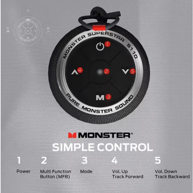 Monster S110 Portable Bluetooth Speaker, True Wireless Stereo Pairing, IPX5 Water Resistant