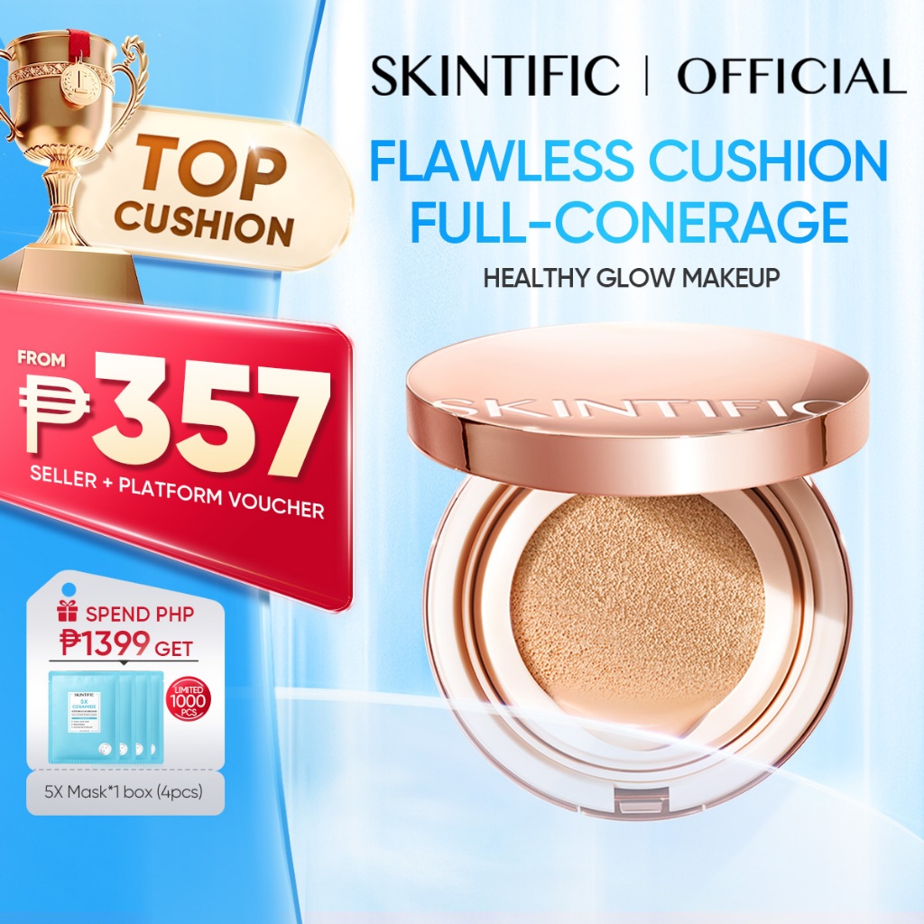 [TOP] SKINTIFIC Cover All Perfect Cushion Powder Foundation Concealer Oil Control 12H Long Lasting