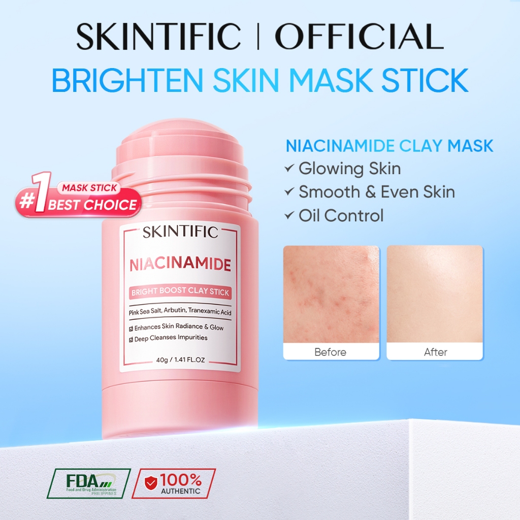 [HOT] SKINTIFIC Niacinamide Bright Boost Pink Clay Mask Stick 40g Whitening Skin care Anti-Acne Set