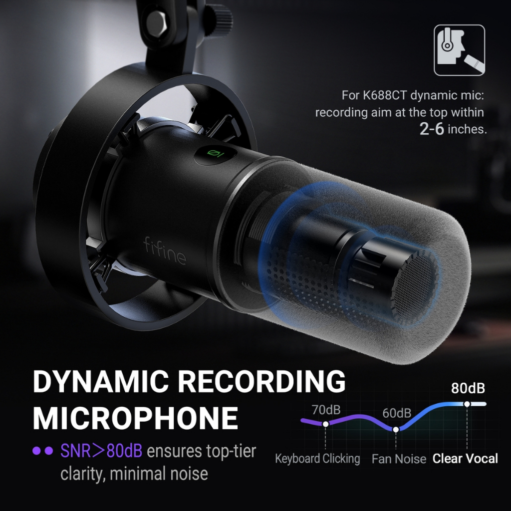 FIFINE K688CT Podcast Microphone Kit, USB/XLR Dynamic Microphone with Boom Arm for PC
