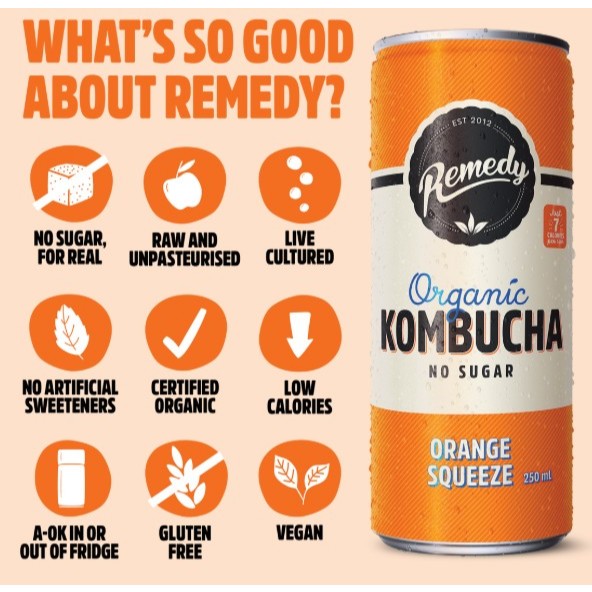 Buy 1 Get 1 Remedy Kombucha Orange Squeeze Kombucha 4-pack