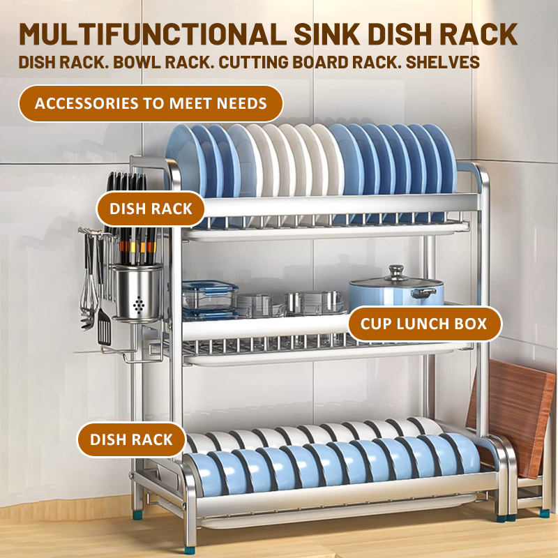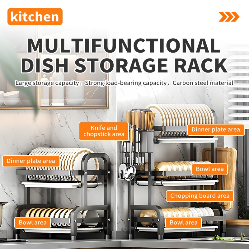 ⚡ PH⚡Home Stainless Disher rack Kitchen Organizer Plate Bowl Cup Dish Drainer Rack Rakuran