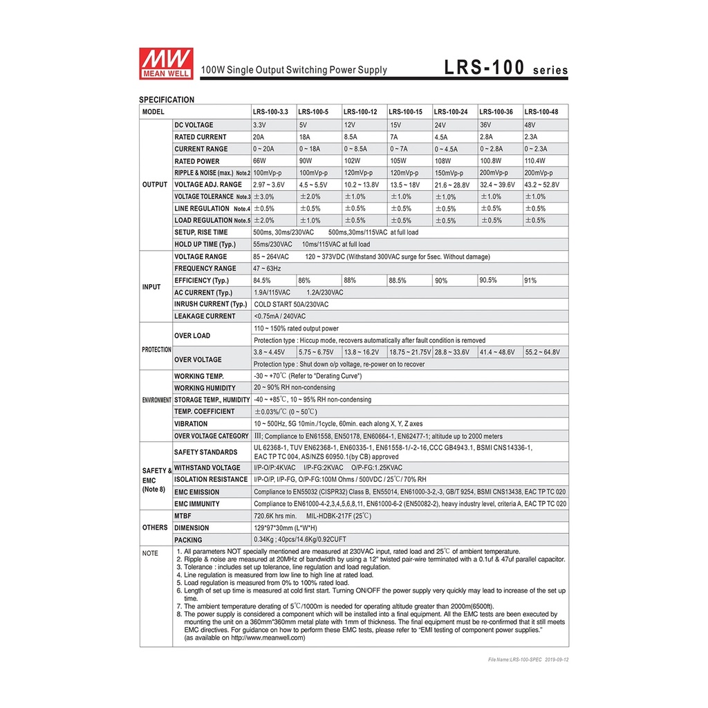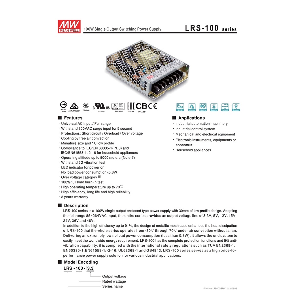 MEAN WELL LRS-100-12 100W 12V Switching Power Supply 110V220V AC To 12V DC 8.5A 100W Meanwell Power Unit PSU Transformer