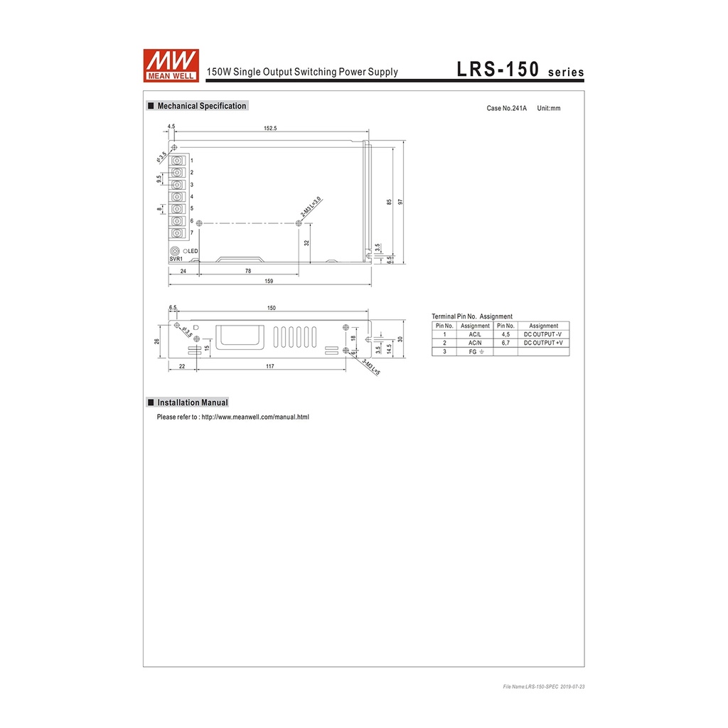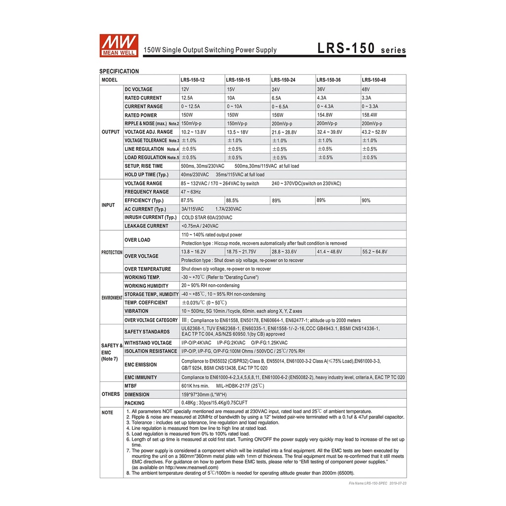 MEAN WELL LRS-150-48 150W 48V Switching Power Supply 110V220V AC To 48V DC 3.3A 158.4W Meanwell LED Strip Light Dc Power Supply