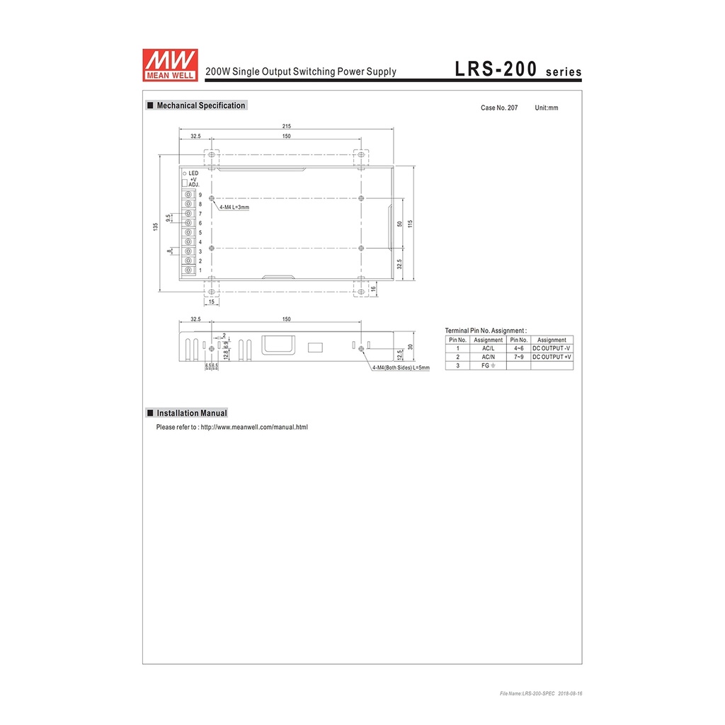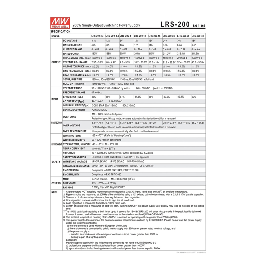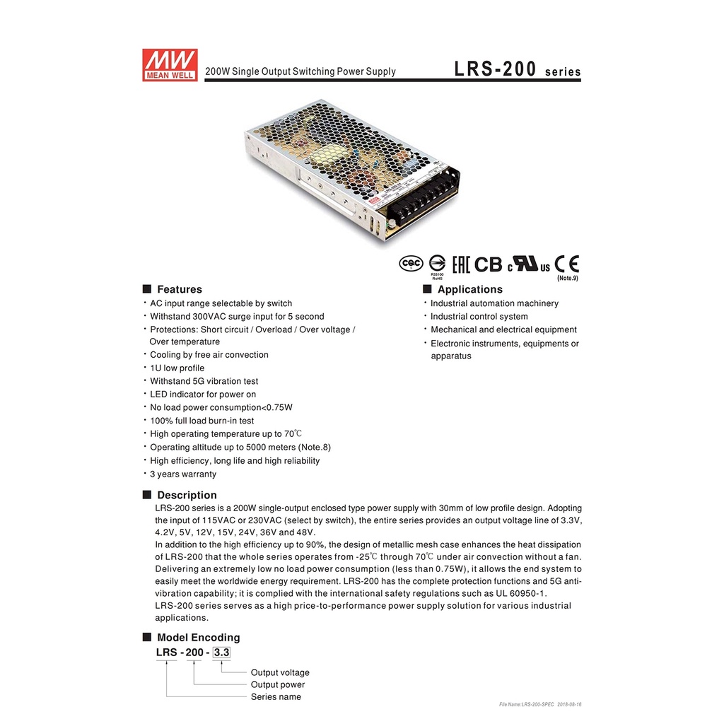 MEAN WELL LRS-200-5 200W 5V Switching Power Supply 110V220V AC To 5V DC 40A 200W Meanwell Dc Power Supply Replace NES-200