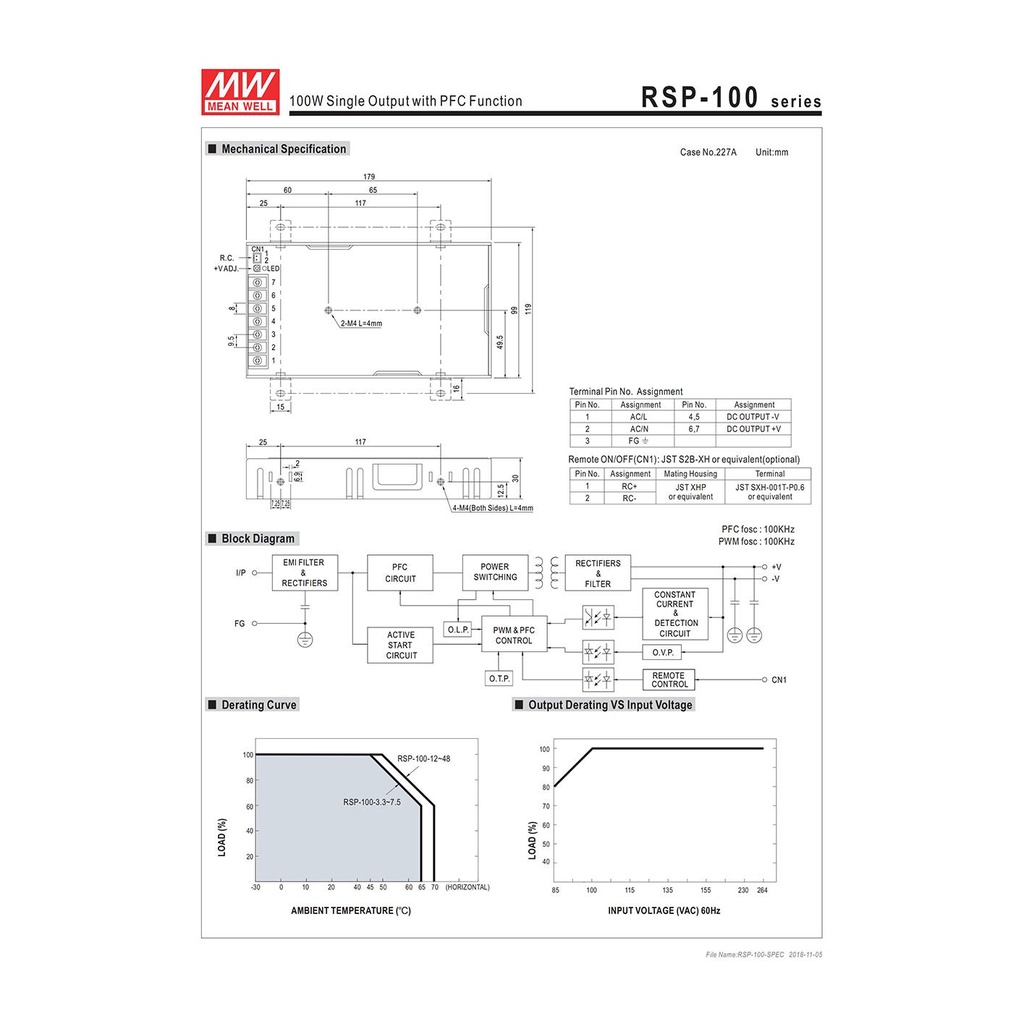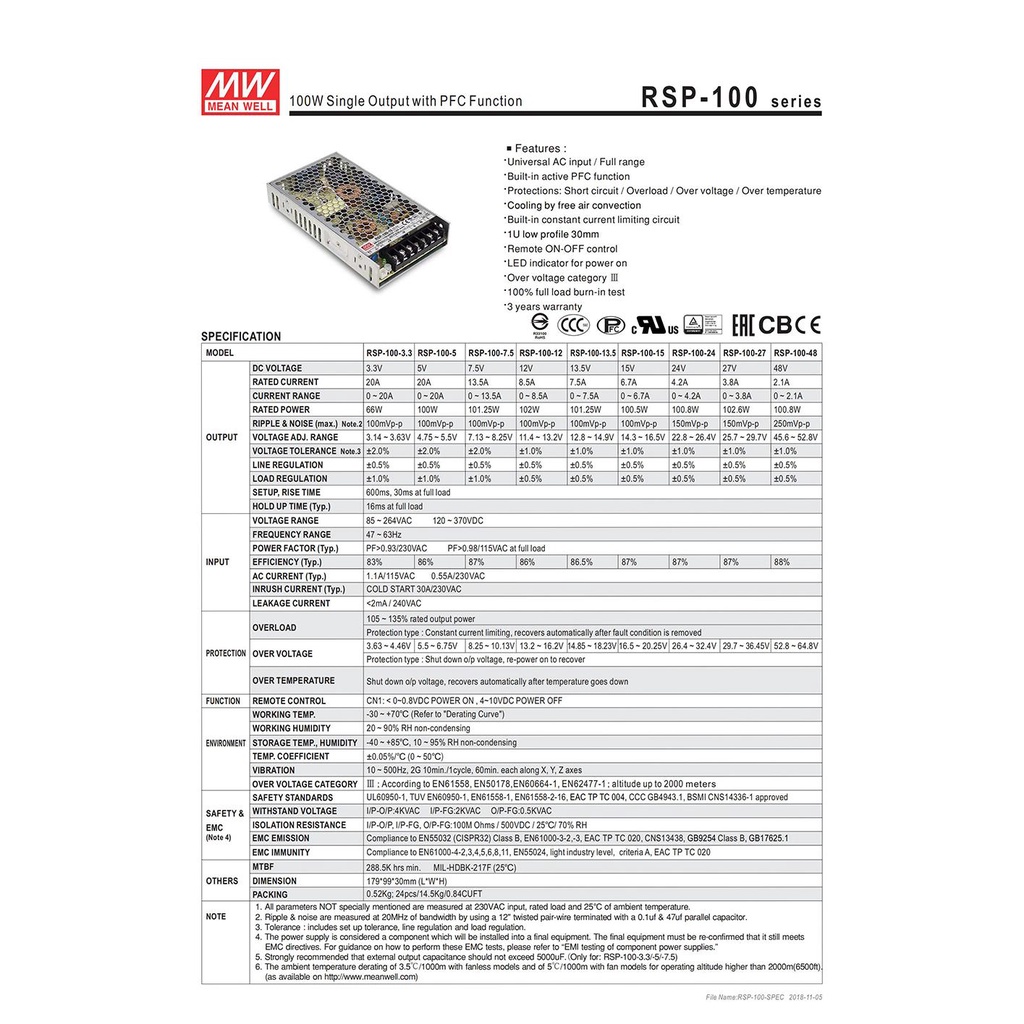 MEAN WELL RSP-100-5 Switching Power Supply 110V/220V AC to 5V DC 20A 100W pfc Meanwell Transformer replace of SP-100-5